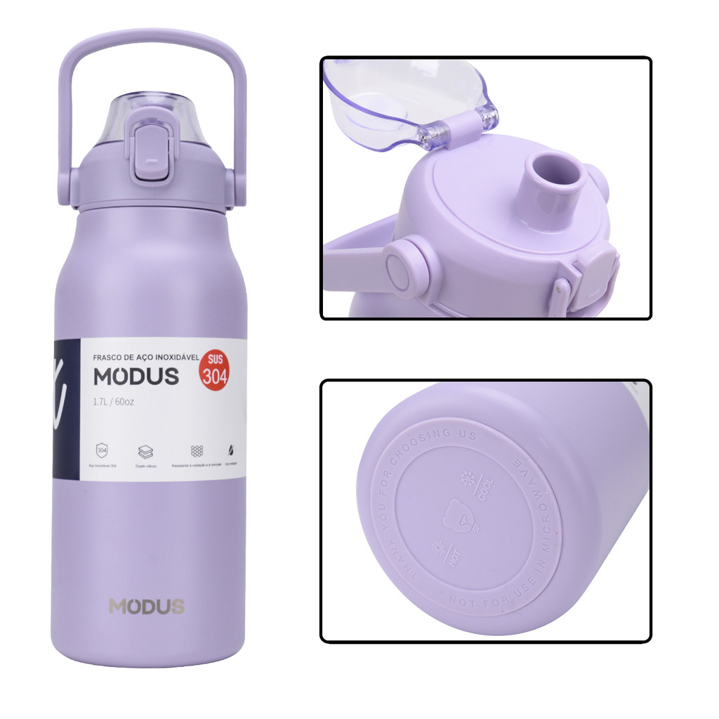 Modus Garrafa Térmica de Água 1700ml Grande Capacidade Com Canudo