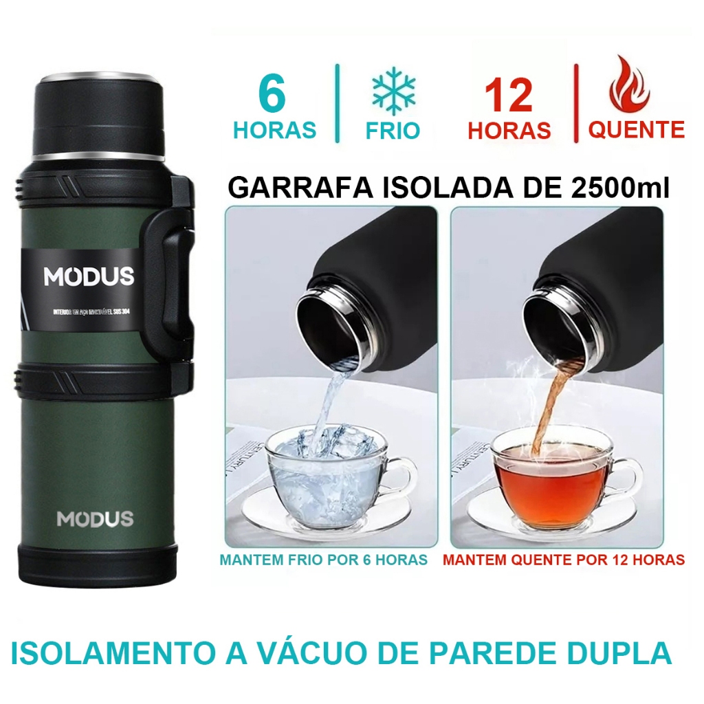 MODUS Garrafa Térmica De Inox 2,4 Litros Cor Preto/Verde