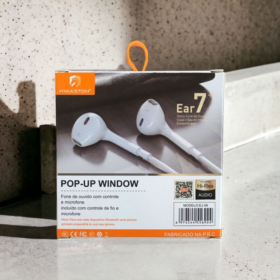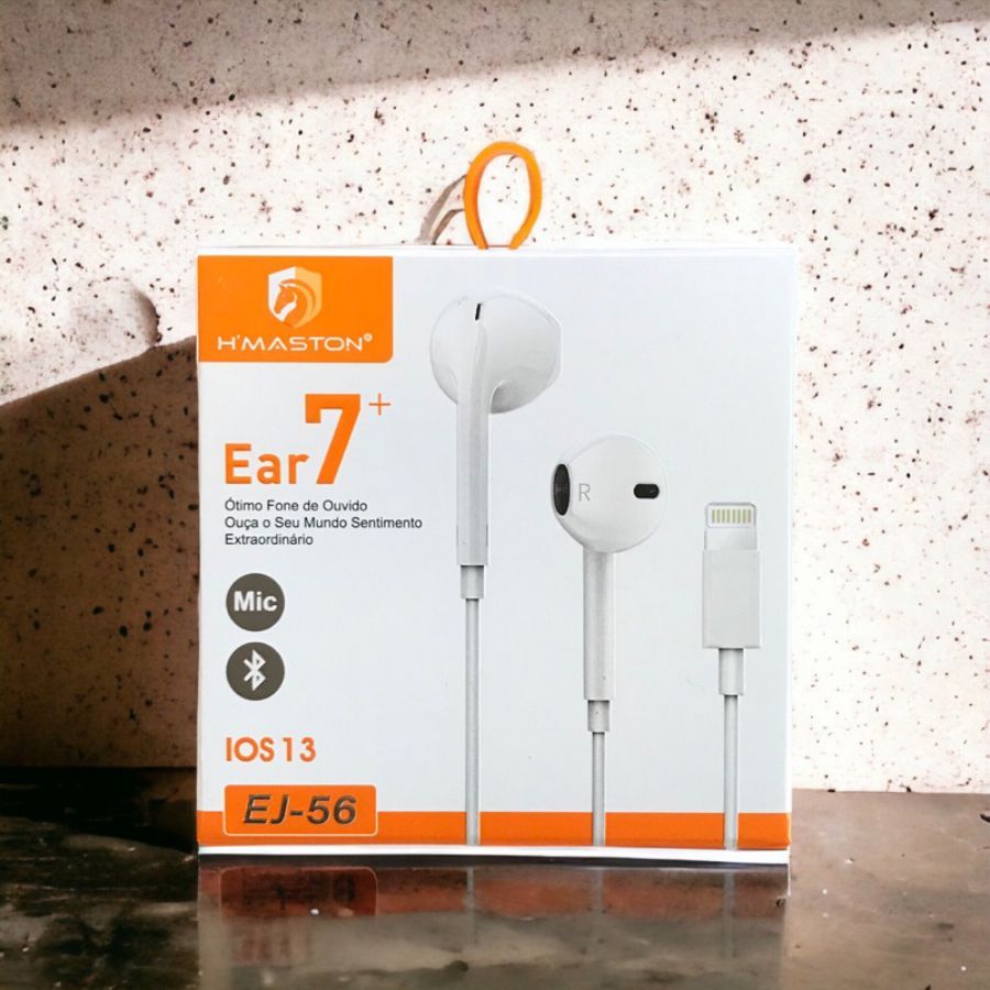 Fone de Ouvido Com Fio Para Iphone Apple Lightning 7, 8 Plus, X, 11 12 13 14 Pro IPad Ear7 EJ-56 H'Maston (Bluetooh ON)