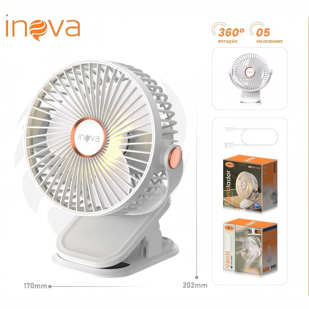 Mini Ventilador Portátil De Mesa Bateria Recarregável Presilha