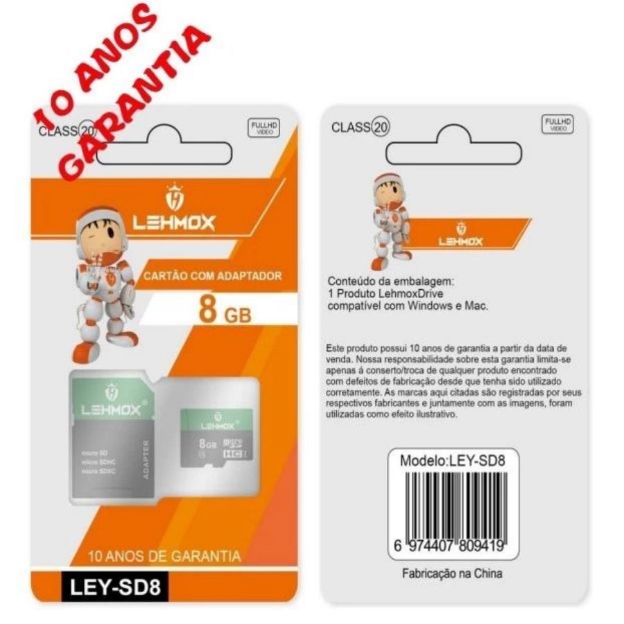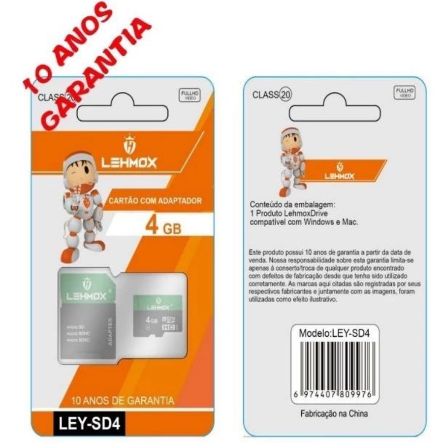 Cartão de Memoria Original 4GB/8GB/16GB/32GB/64GB/128GB C/ Adaptador Drive LEHMOX