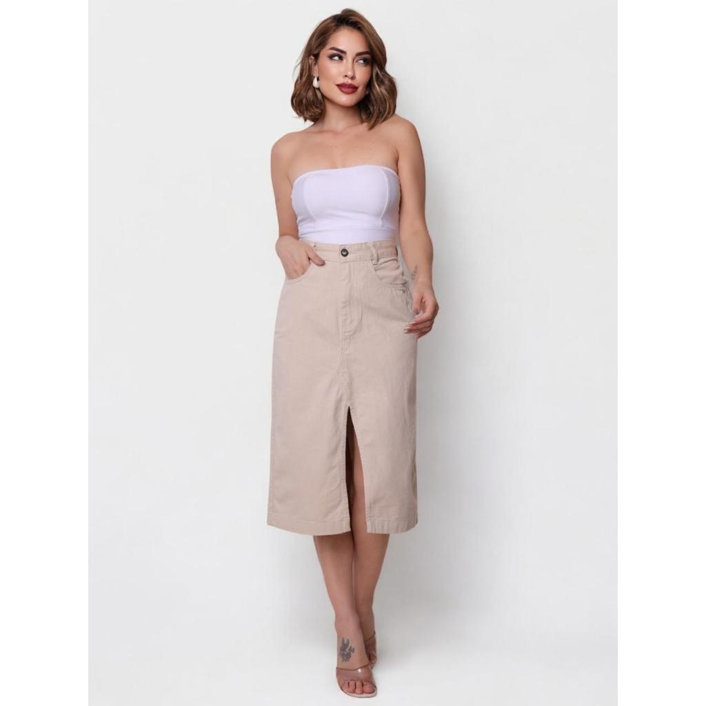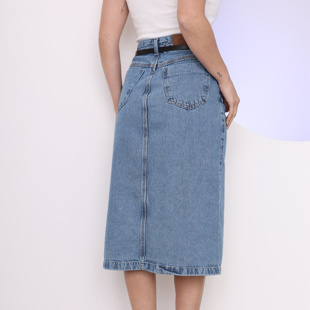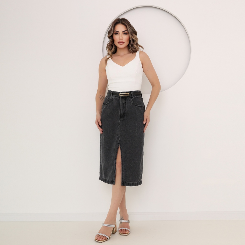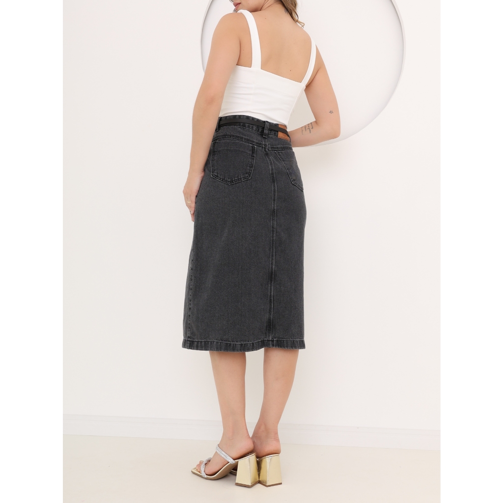 Saia jeans com fenda acompanha cinto feminino novo