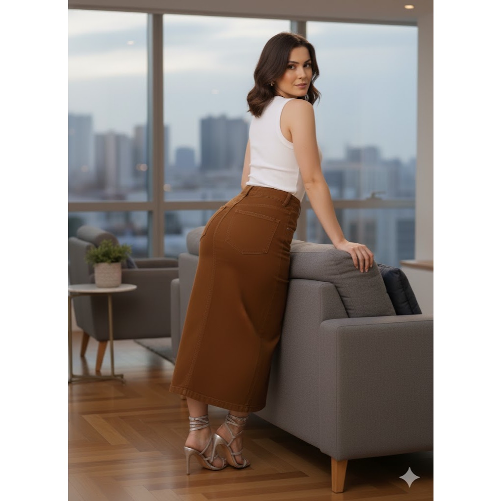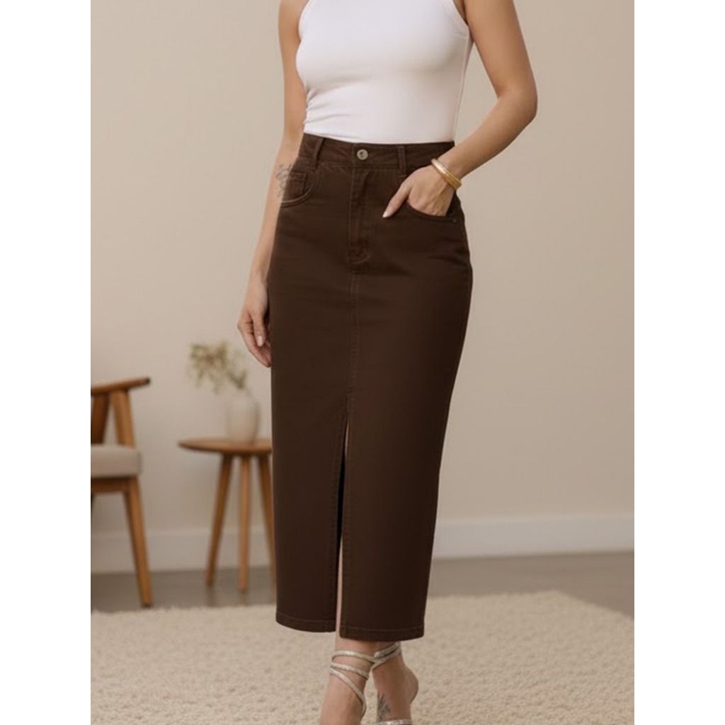 Saia jeans cintura alta Fenda no meio, casual, elegante, simples e elegante