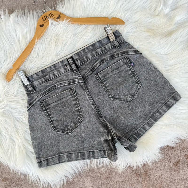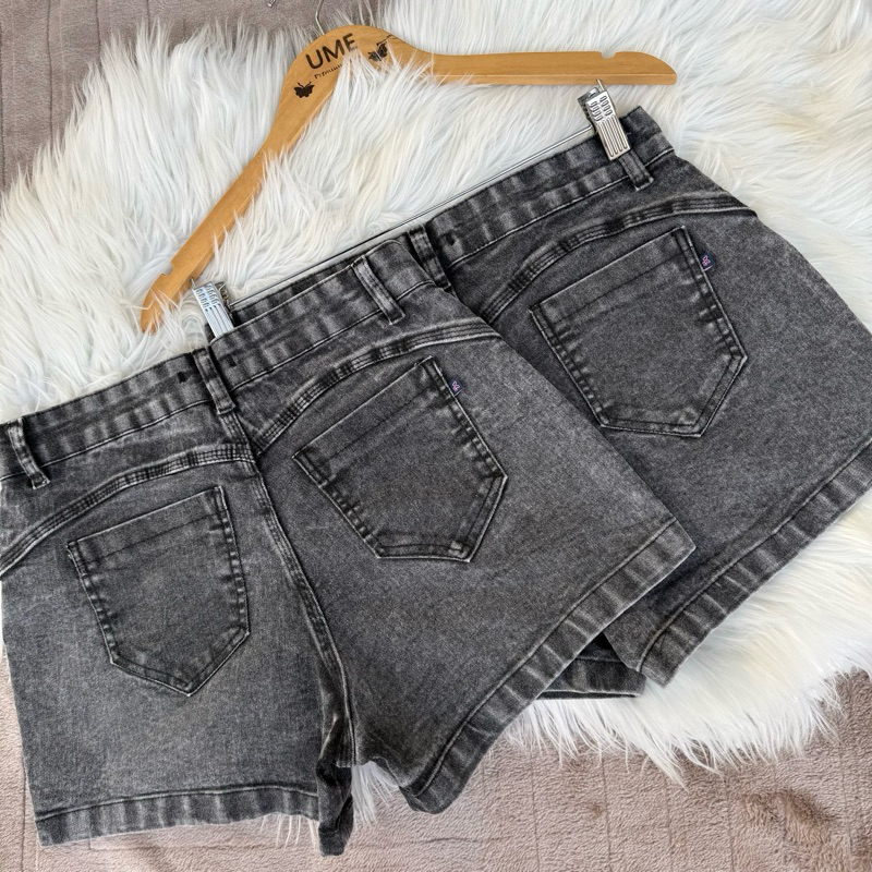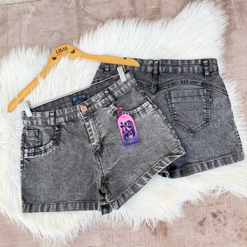 Short Preto Jeans Marmorizado Manchado Levanta Bumbum com Pinças Short Curto Cintura Alta Lycra