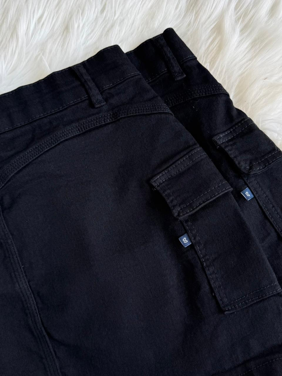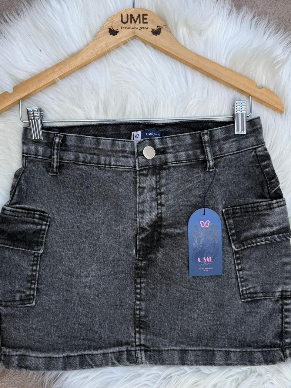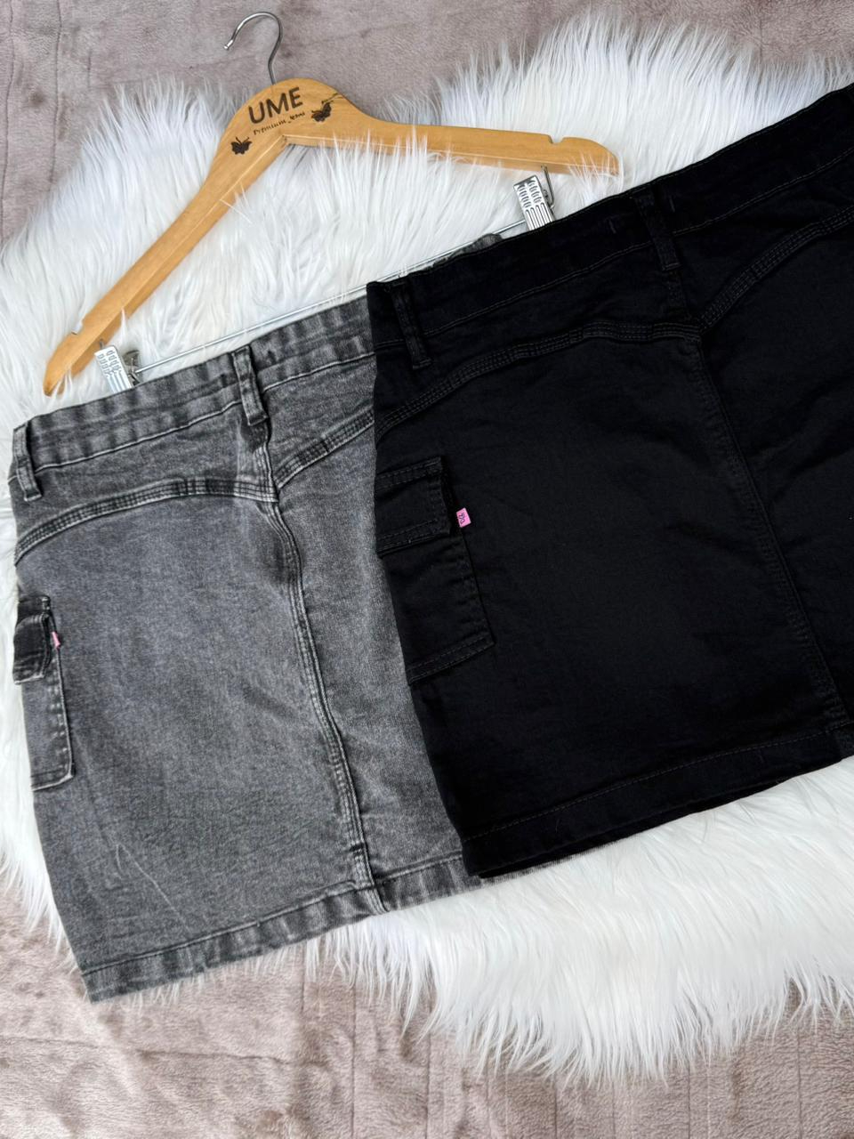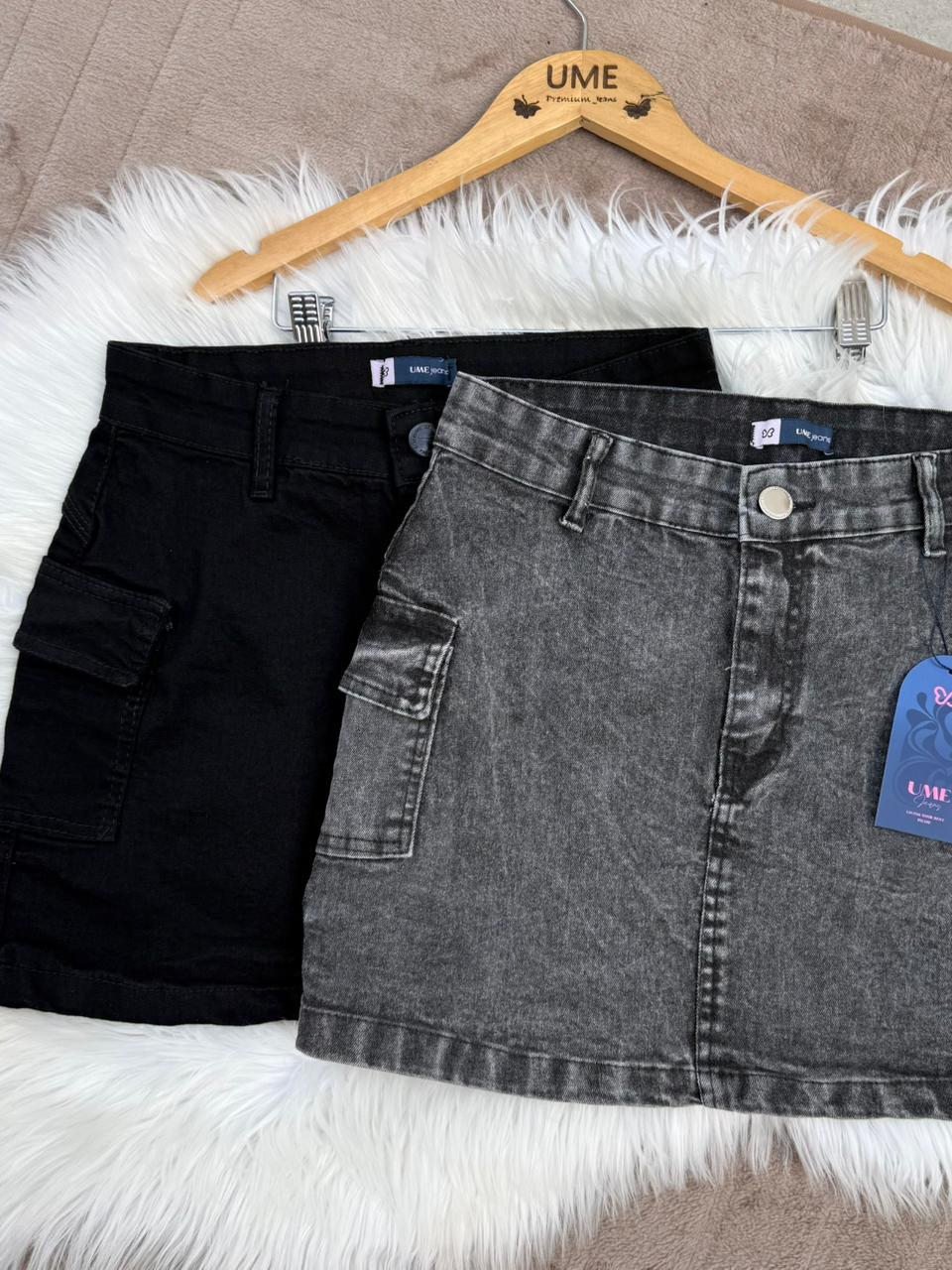 Kit 2 Saias Preta+Marmorizado Grafite Saia Cargo Curta Cintura Alta Elastano Barata Empina Bumbum
