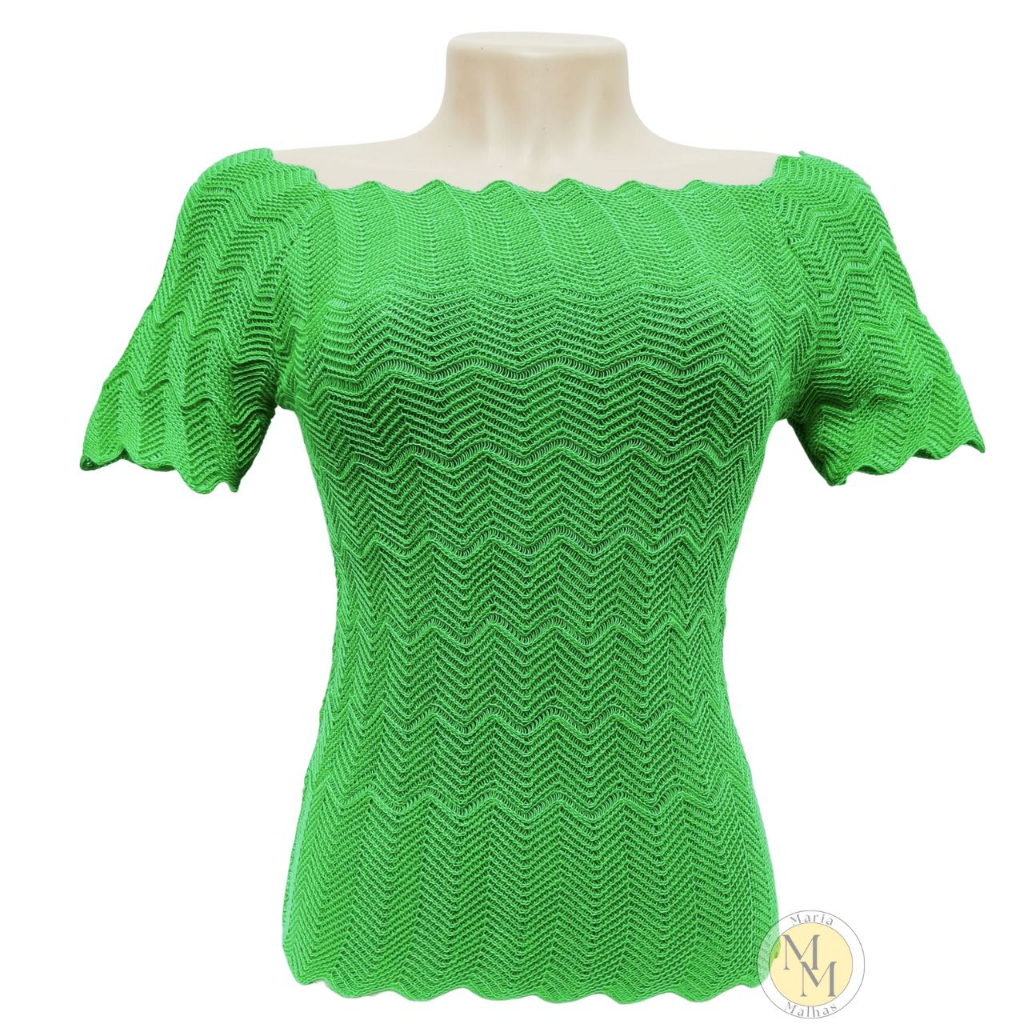 Cropped Zig Zag Blusa Feminina Gola Canoa Moda Tricô Primavera Verão