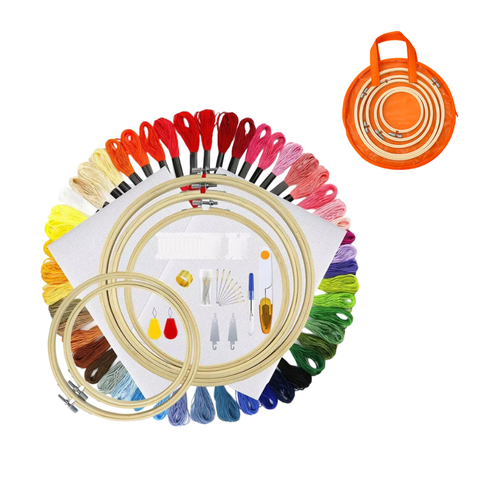 Kit Bordado Completo Ponto Cruz Bastidor Linhas e Acessórios
