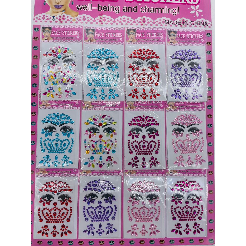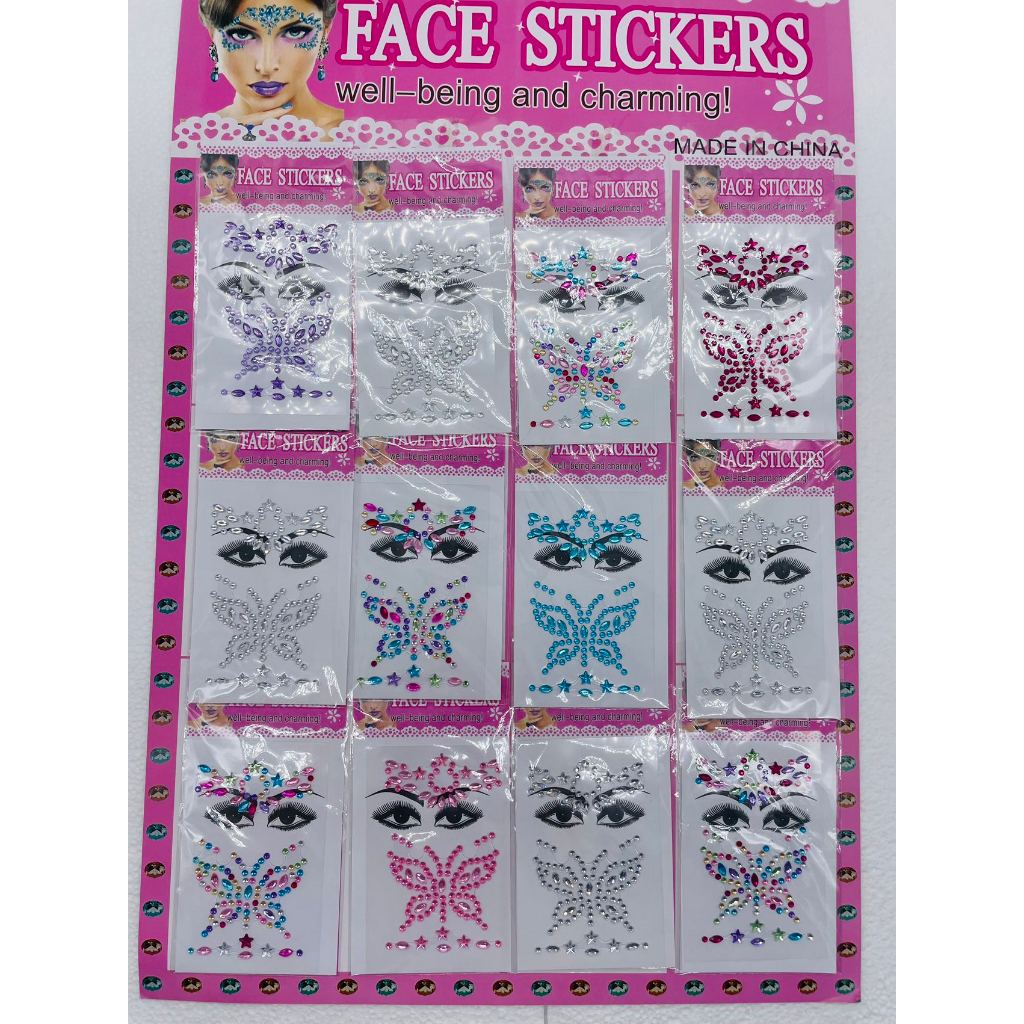 Atacado 12 Adesivos de Rosto para Carnaval/Festa Adulto e Infantil Maquiagem Artistica