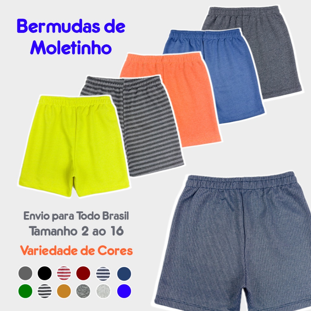 Kit 5 Bermudas Infantil de Moletinho Sortidas Shorts Escolar Unissex Menino e Menina