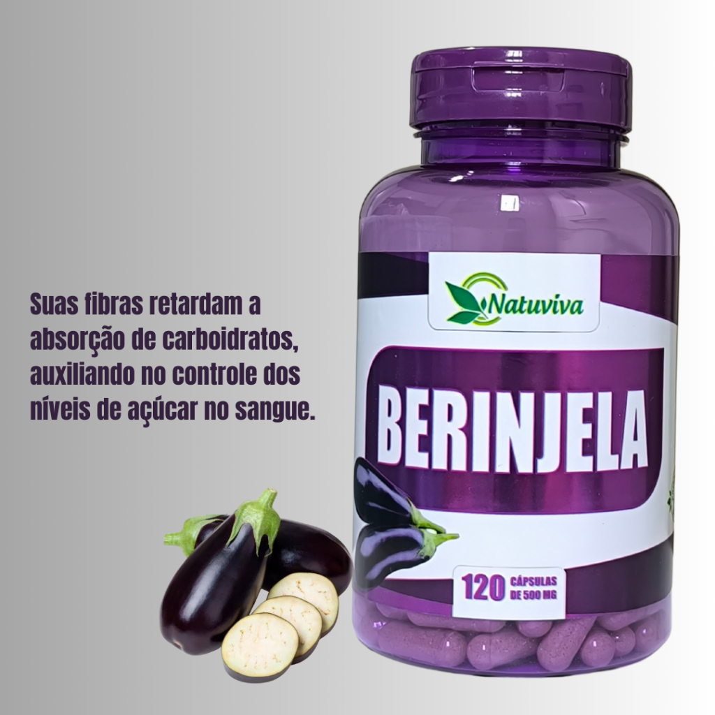 Berinjela 120 Cápsulas de 500 mg - Natuviva - Kits Com 1, 2 e 3 Potes