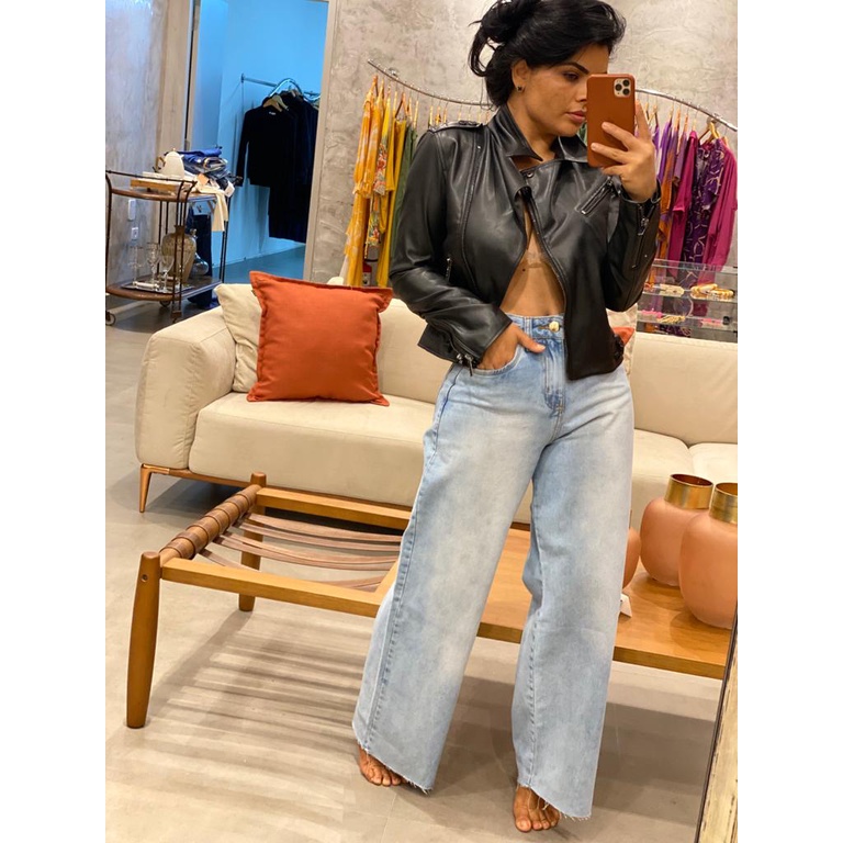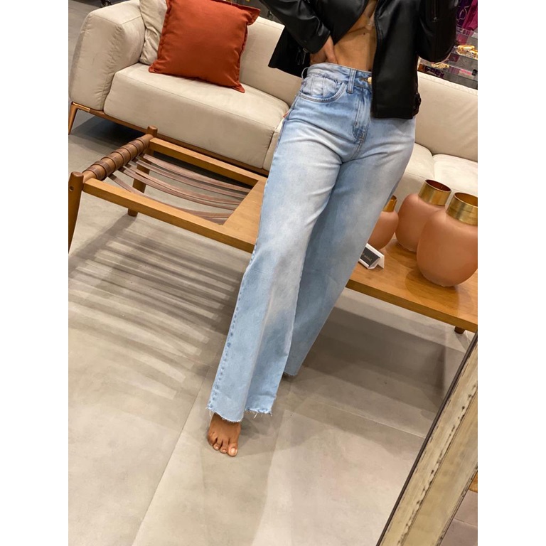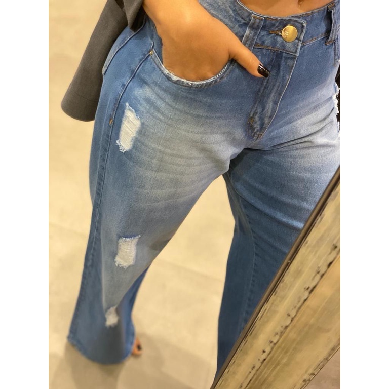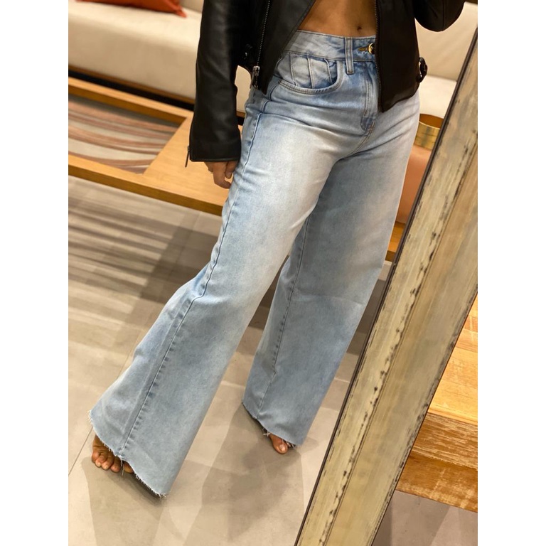 Wide Leg Pantalona Calça Jeans Feminina Cintura Alta Sem Lycra Tendencia