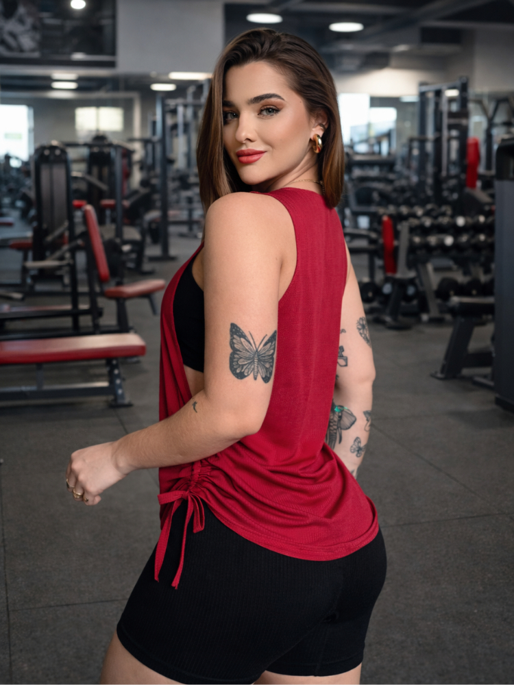 Regata Dry Fit Blusa Feminina Fitness Tapa Bumbum Top Treino Academia Vesti Calça Legging