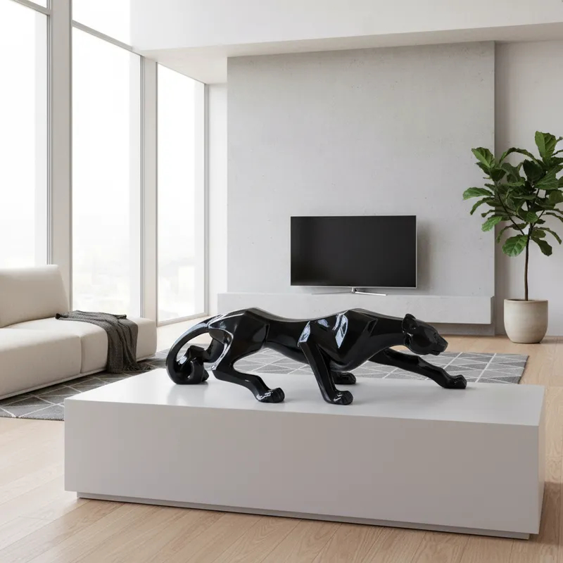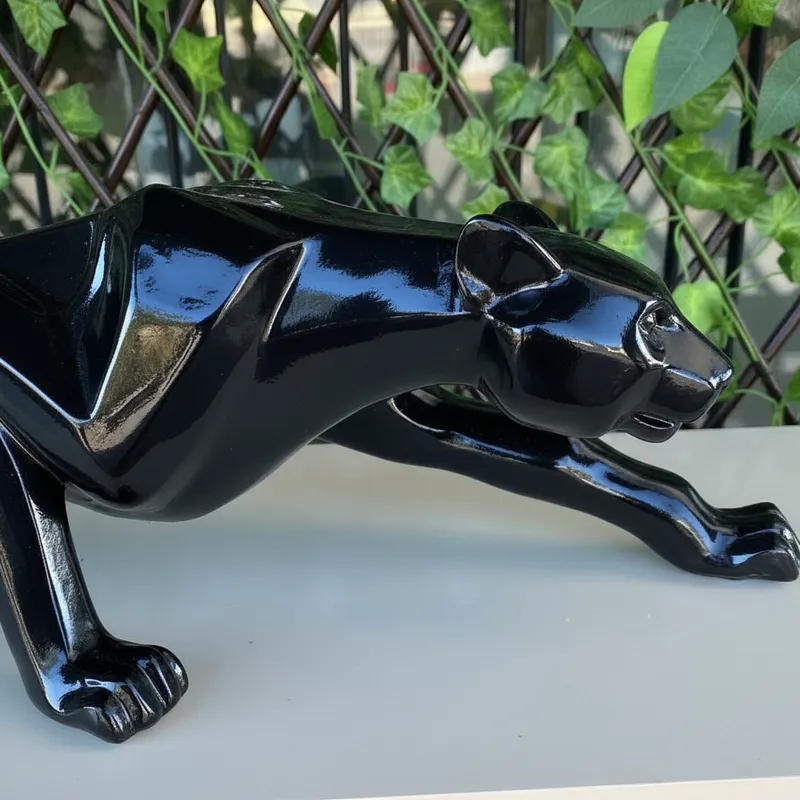 Pantera ataque grande 65 cm Preto Brilho Decoração de Luxo Sala Escritório FEITA NO BRASIL BR