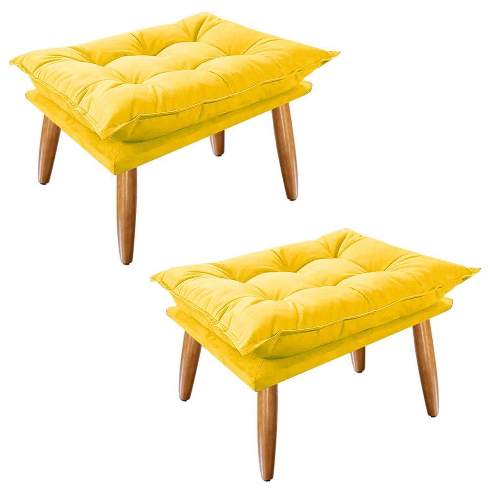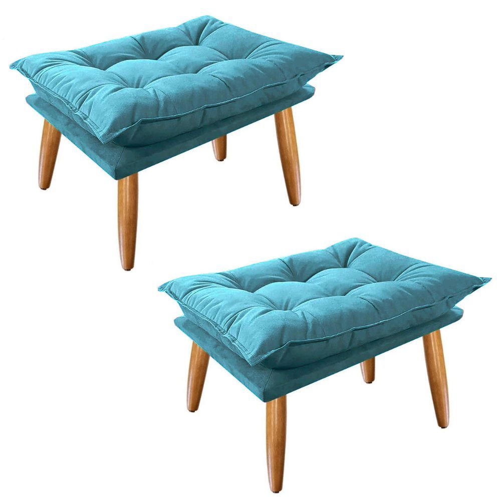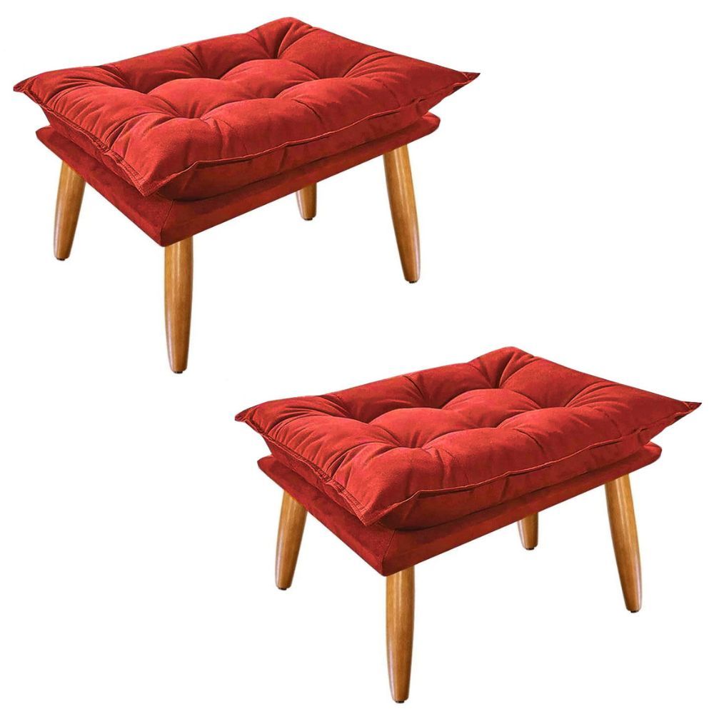 Kit 2 Puffs Opala Slim Suede Pés Palito Decorativo - Bela Móveis