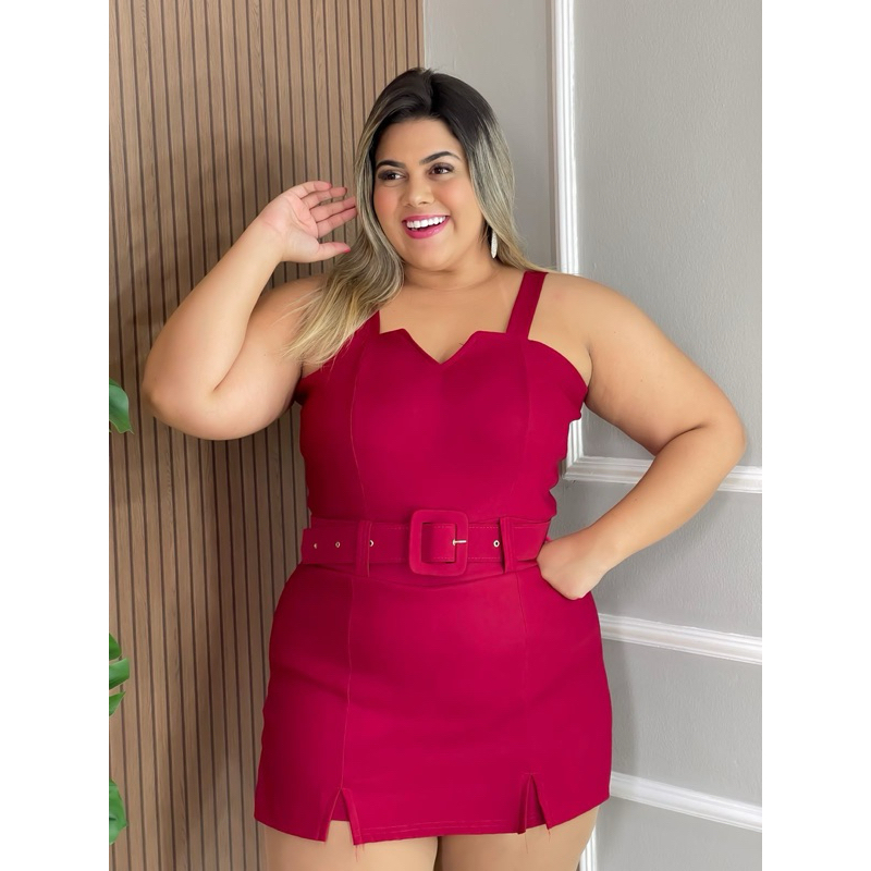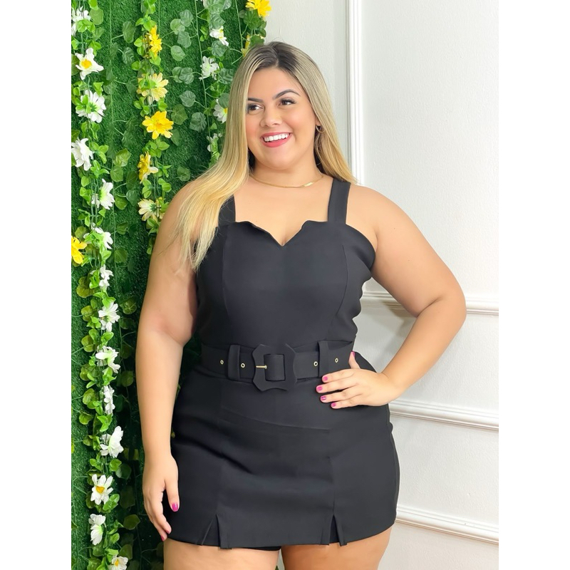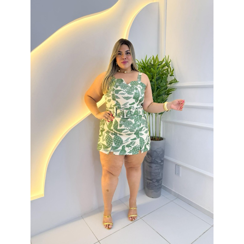 macaquinho com cinto plus size estampado tecido bengaline gordinha