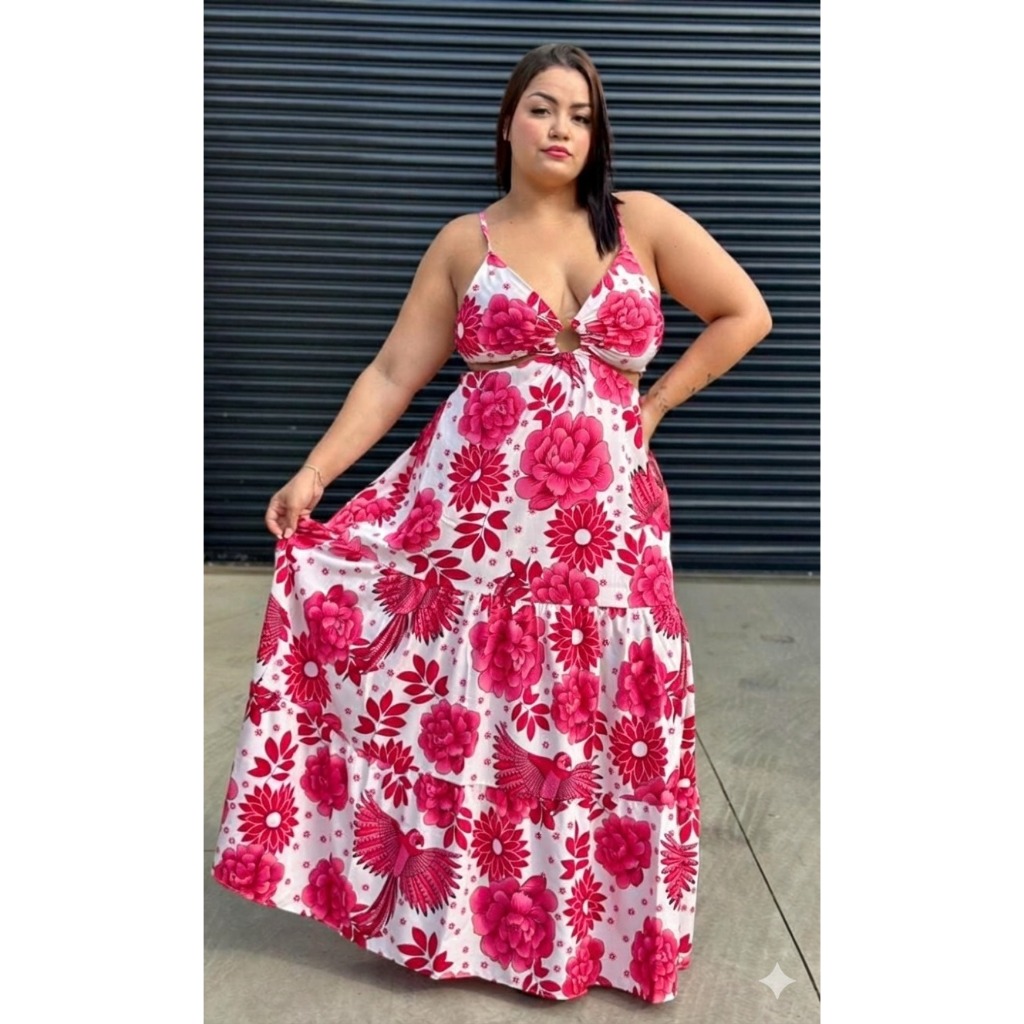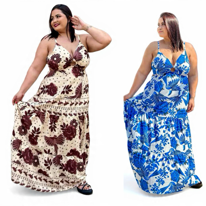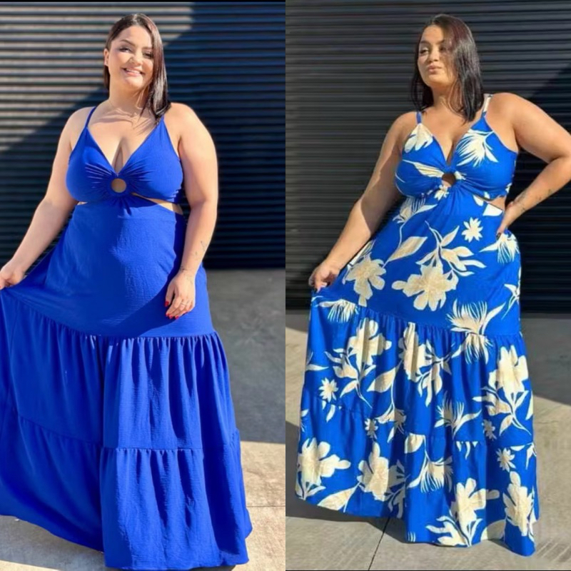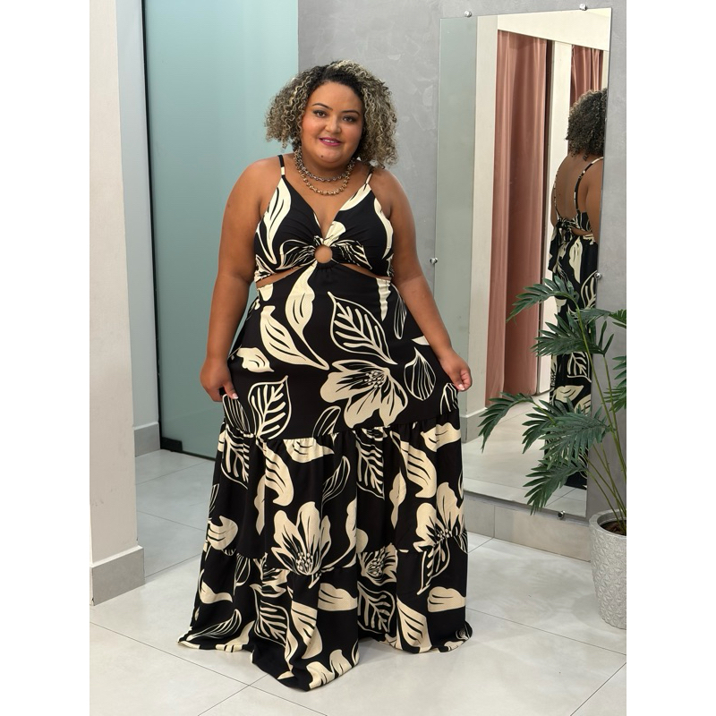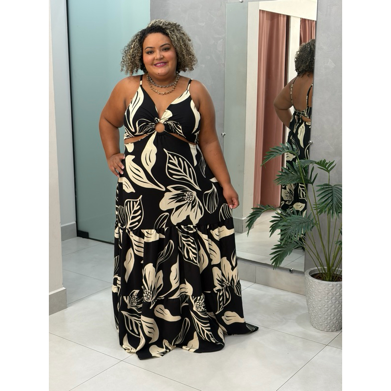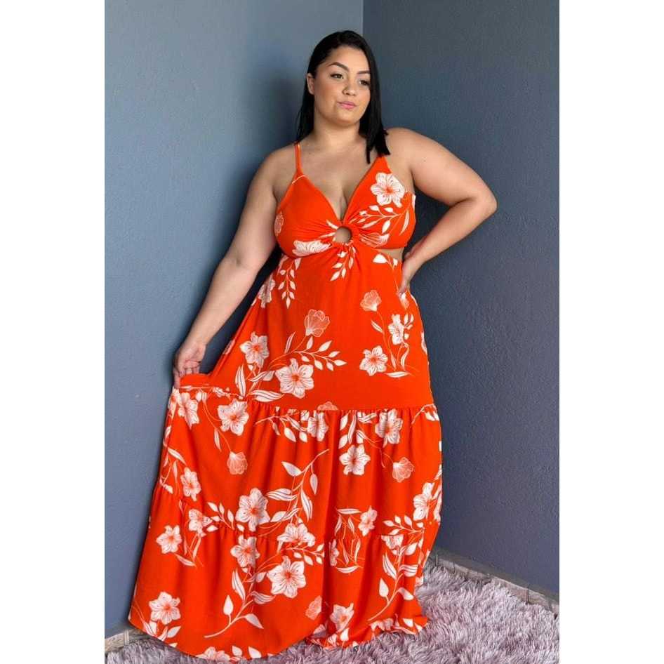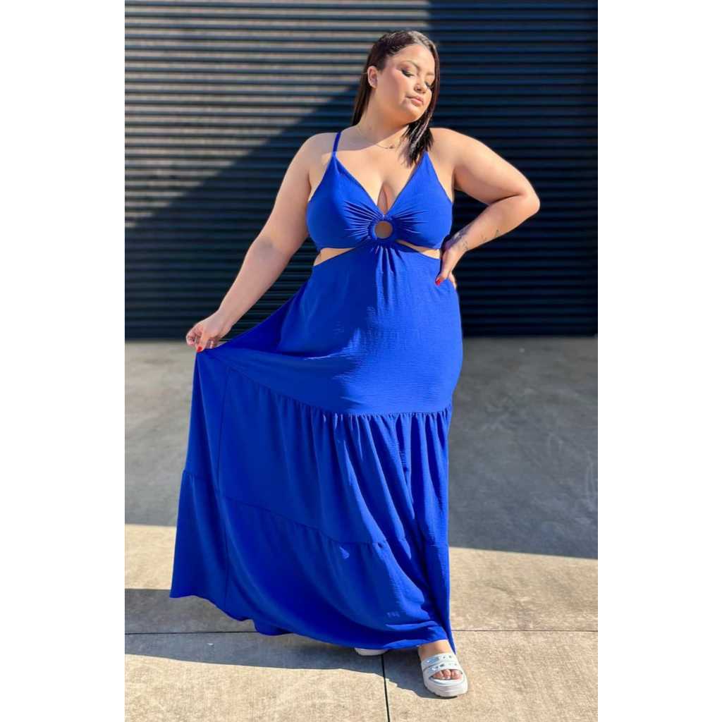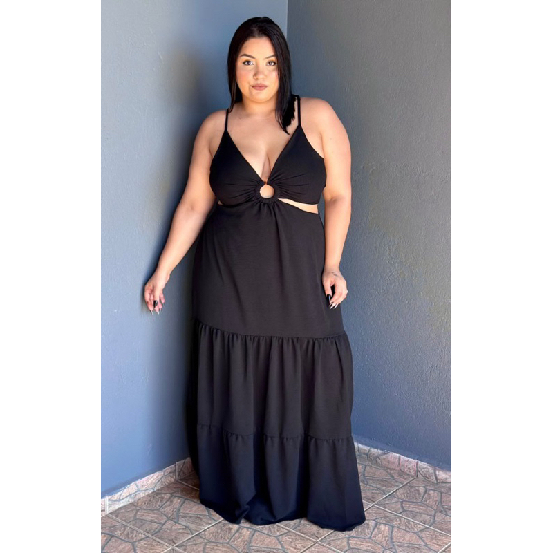 Vestido longo Plus size alcinha argola aberto nas costa