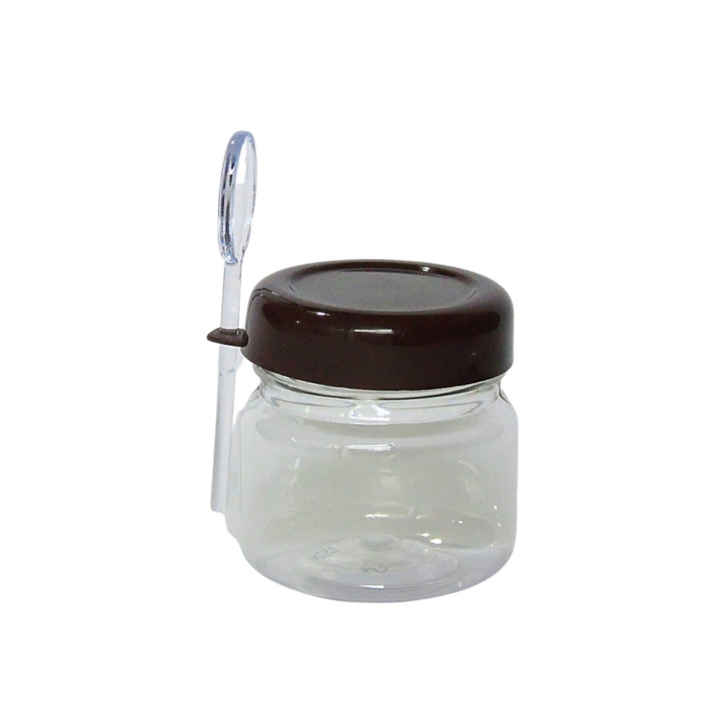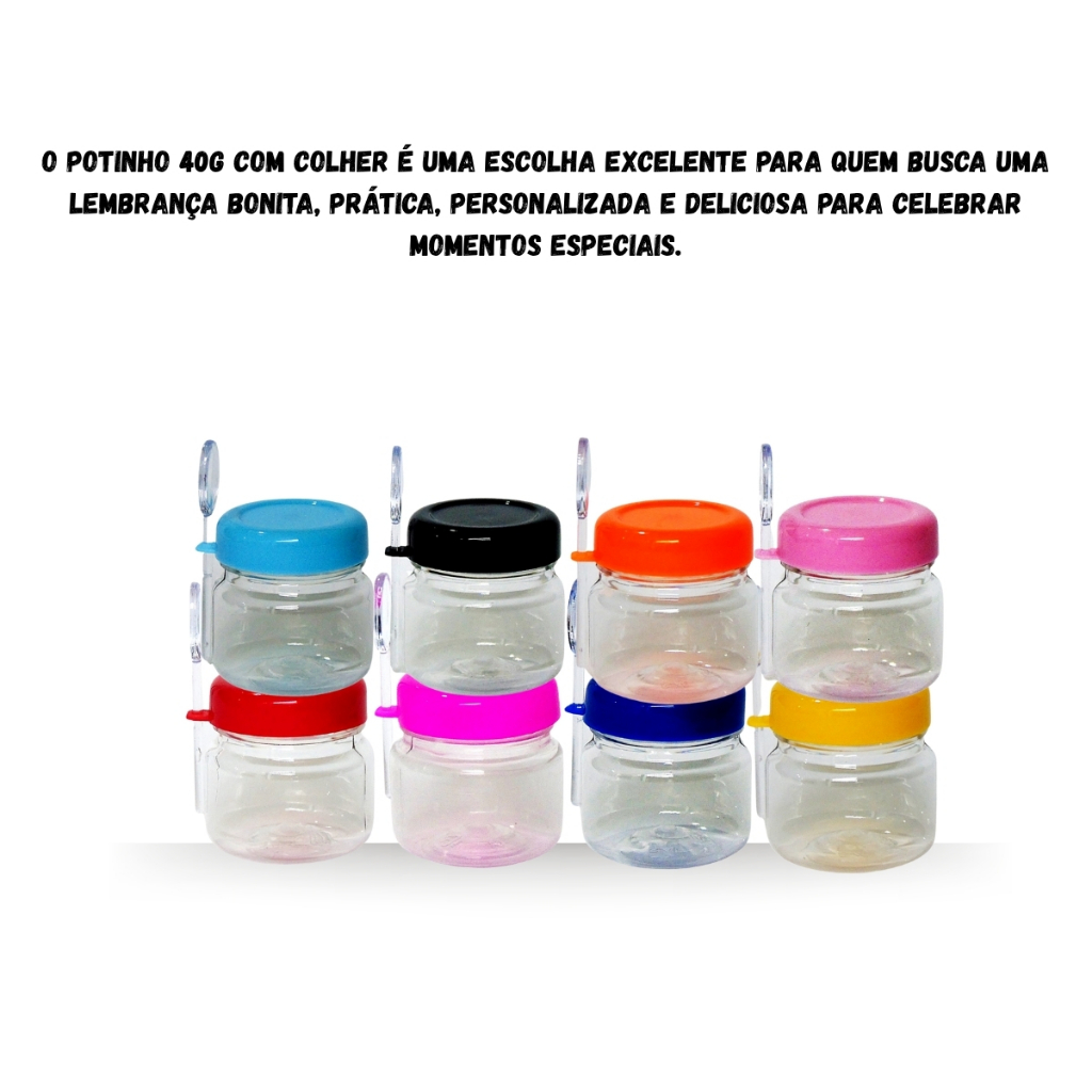 30 potinho PET com colher 40g sobremesa, creme de avelã NUT, brigadeiro gourmet, geleias, mel, lembracinhapasta amendoim