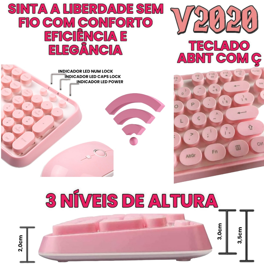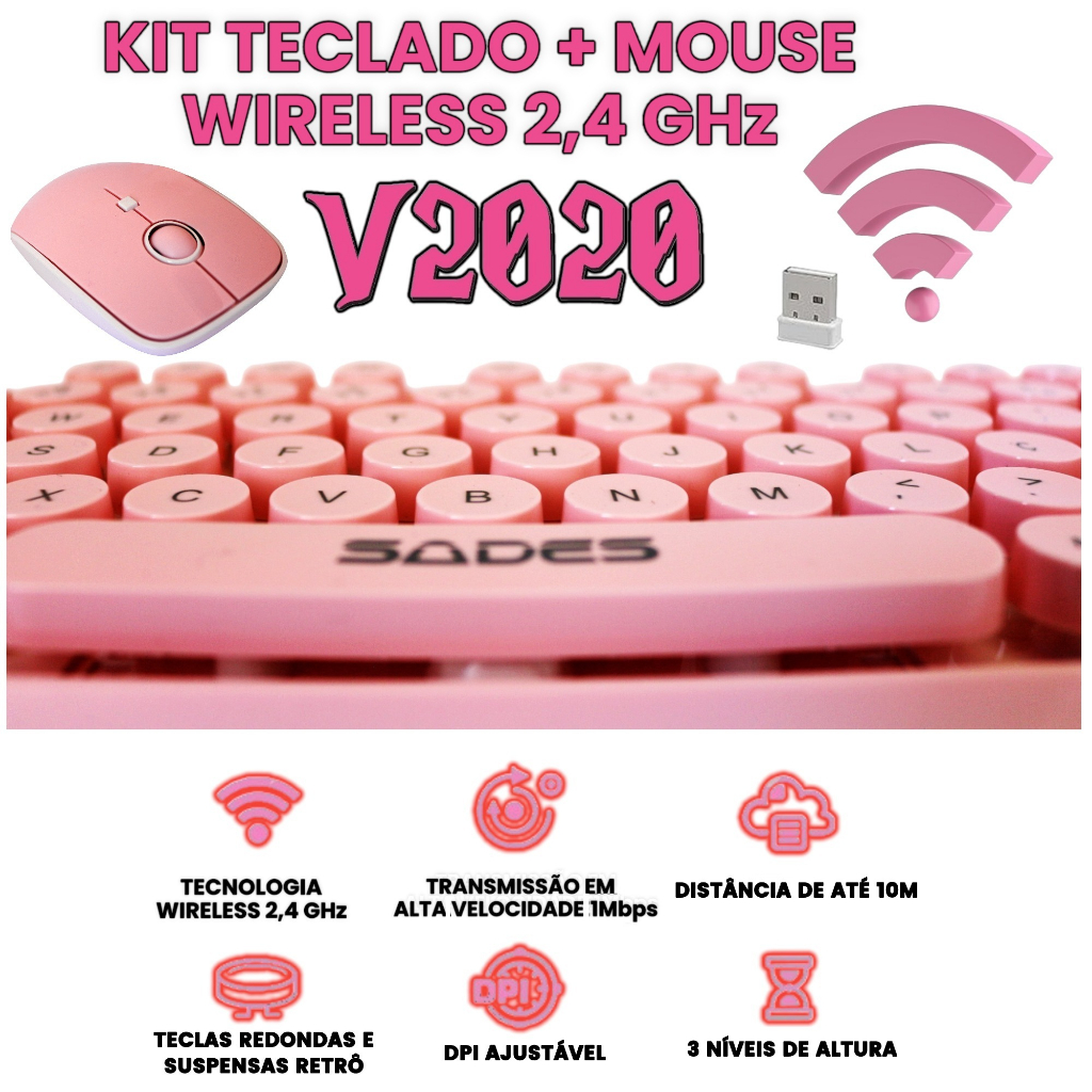 SADES V2020 teclado + mouse sem fio Wireless 2,4Ghz PT-BR ABNT