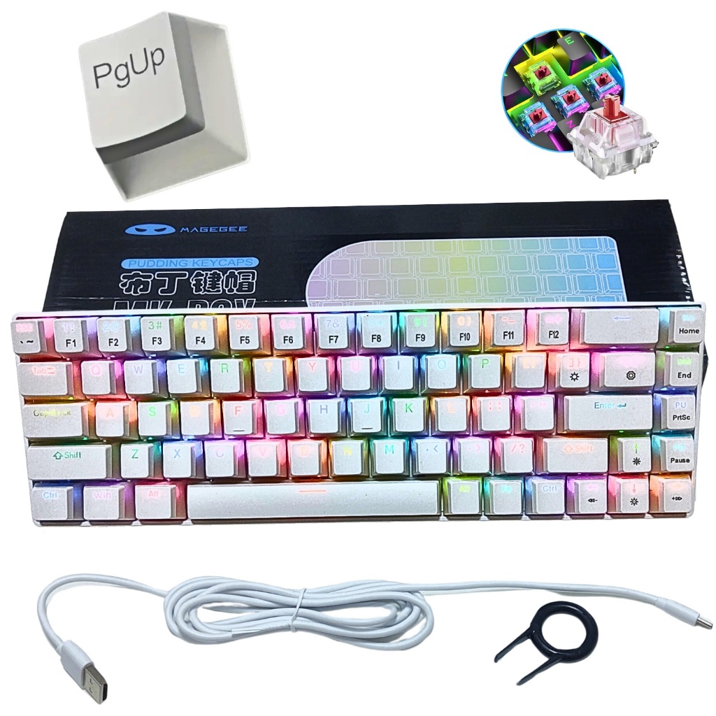 Teclado Mecânico Gamer Magegee Mk-box Ptb Pudim Rgb Branco