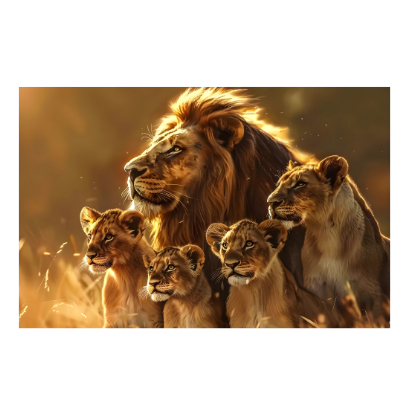 Quadro decorativo Leão Familia Filhotes Por do Sol Sala Quarto Cozinha e Hall