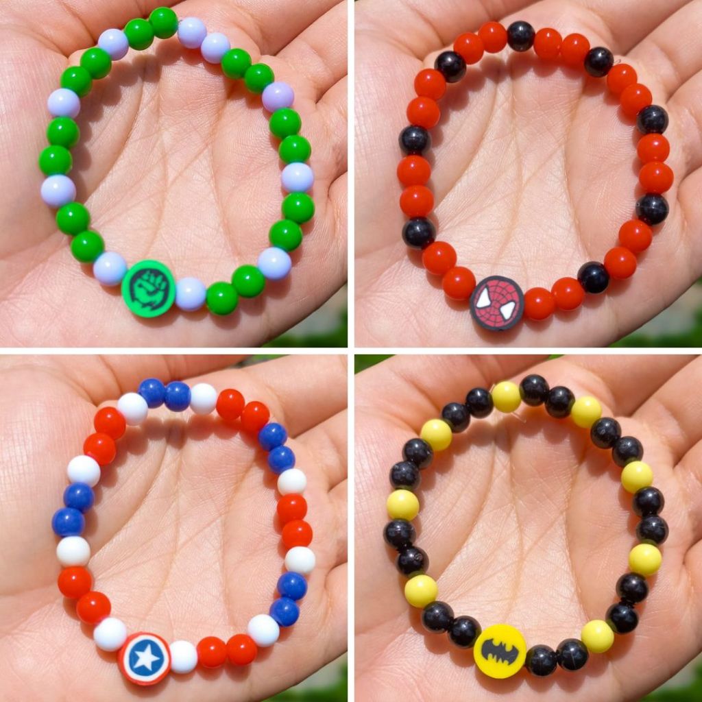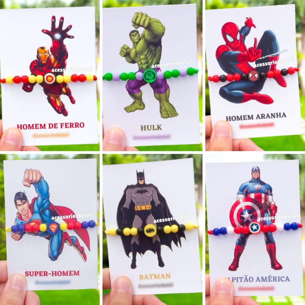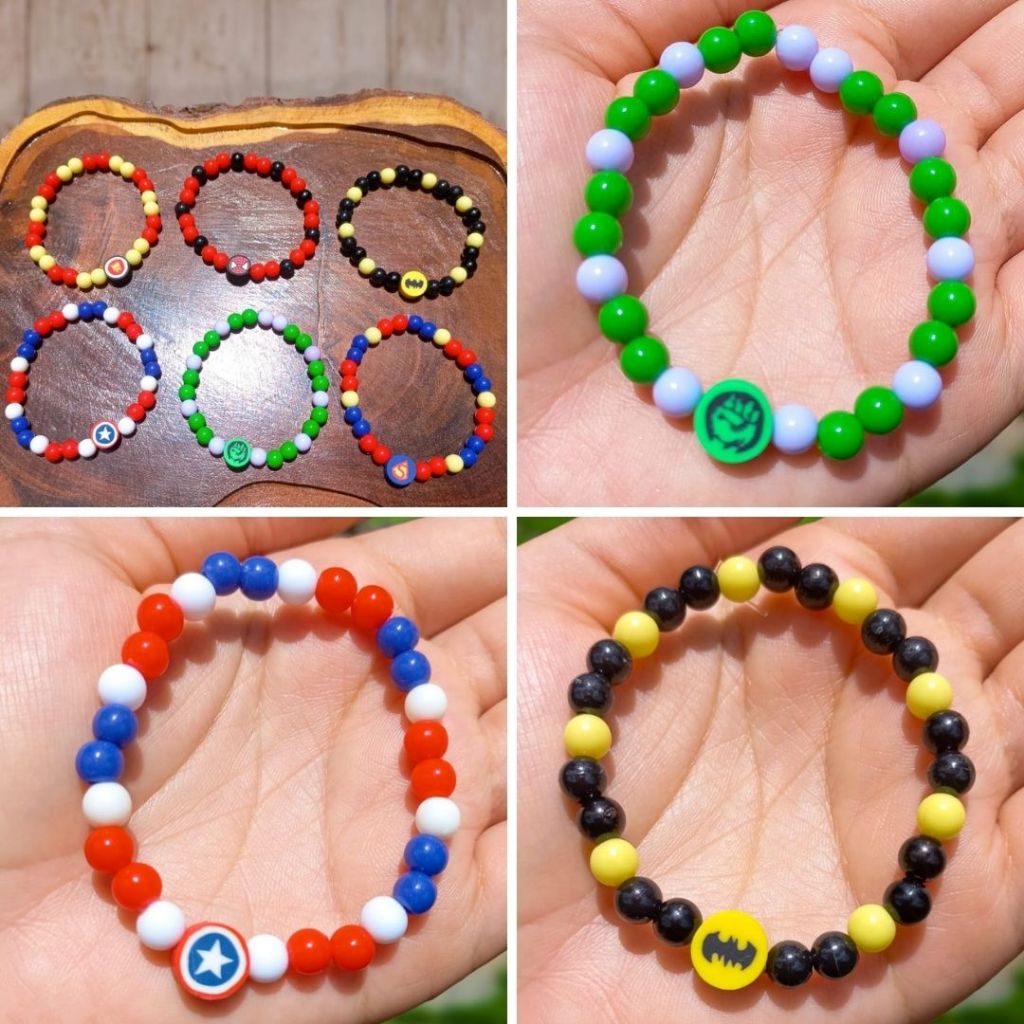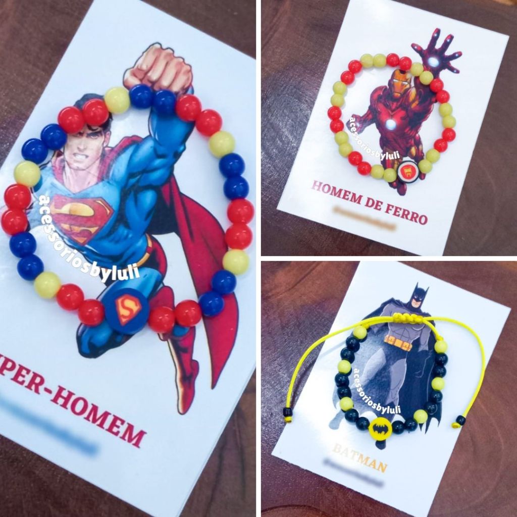 Pulseira de super herói de miçangas infantil menino