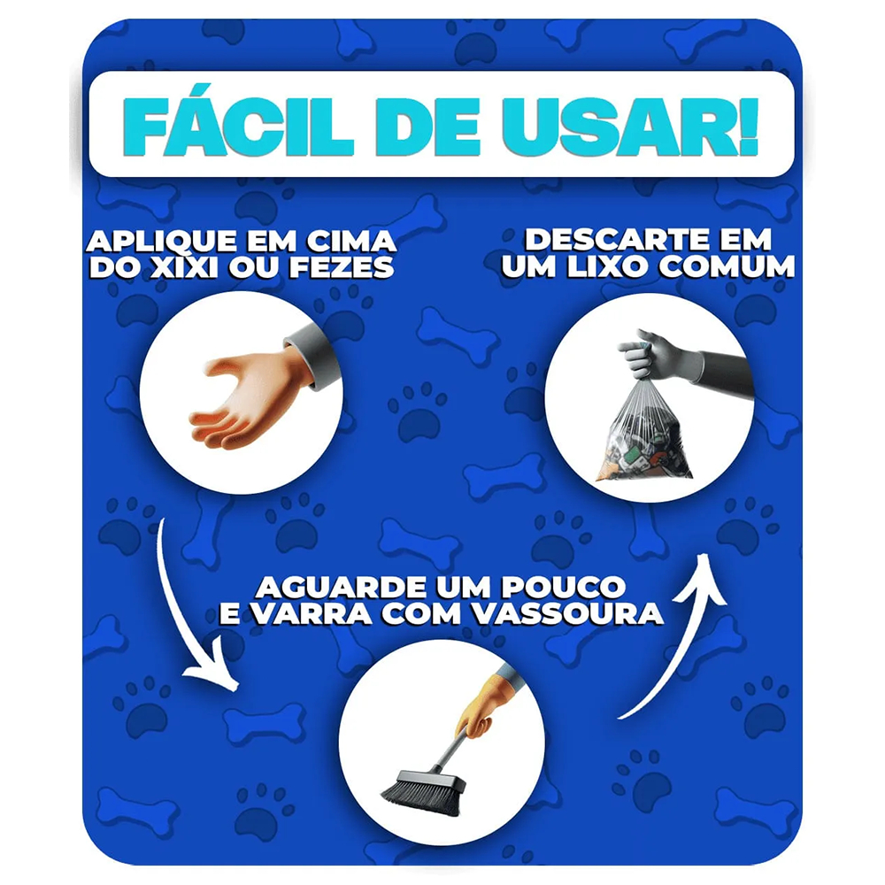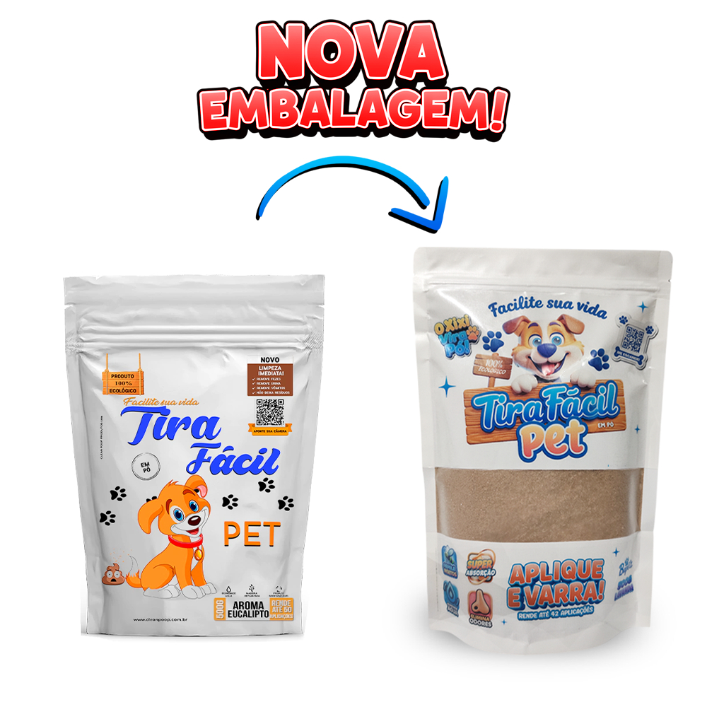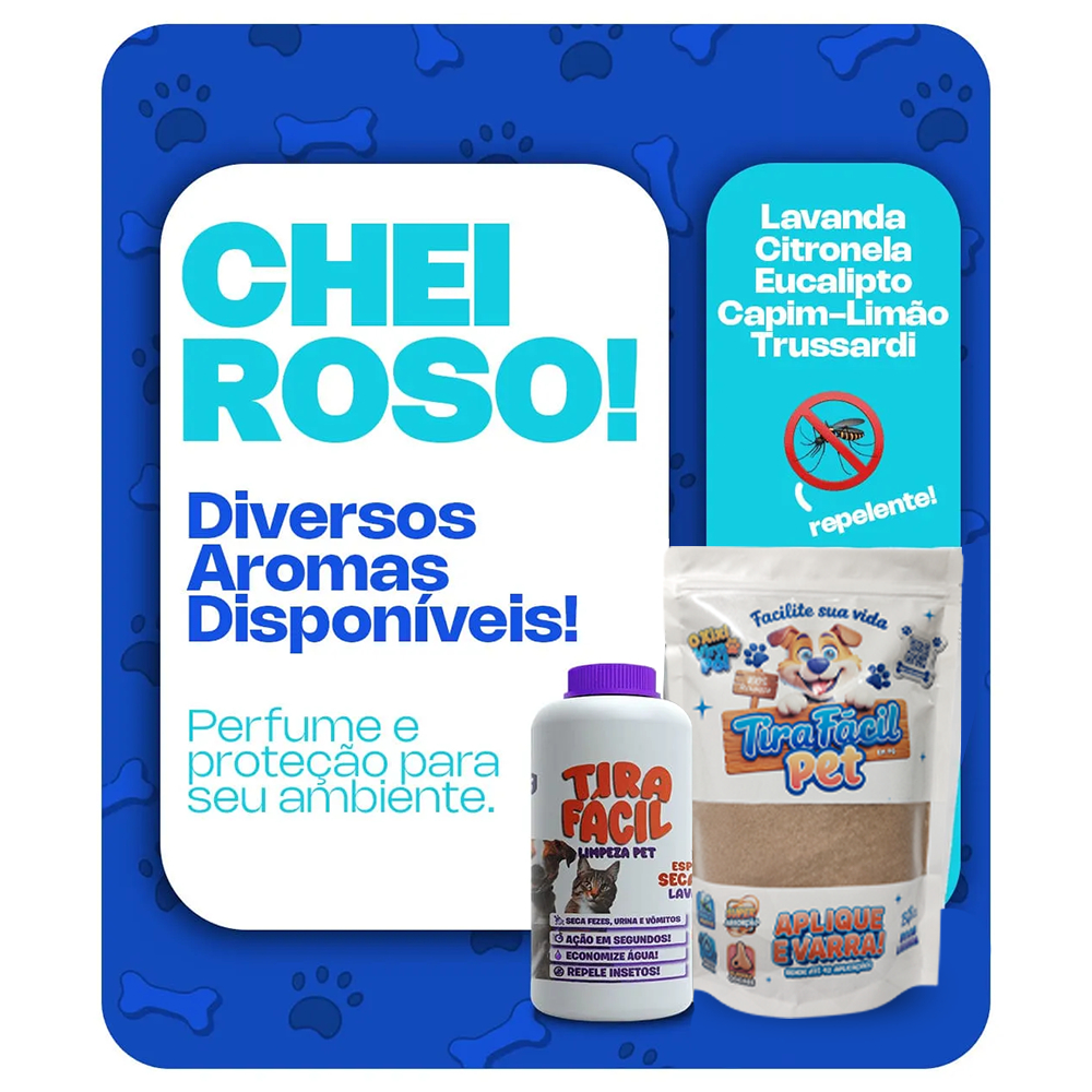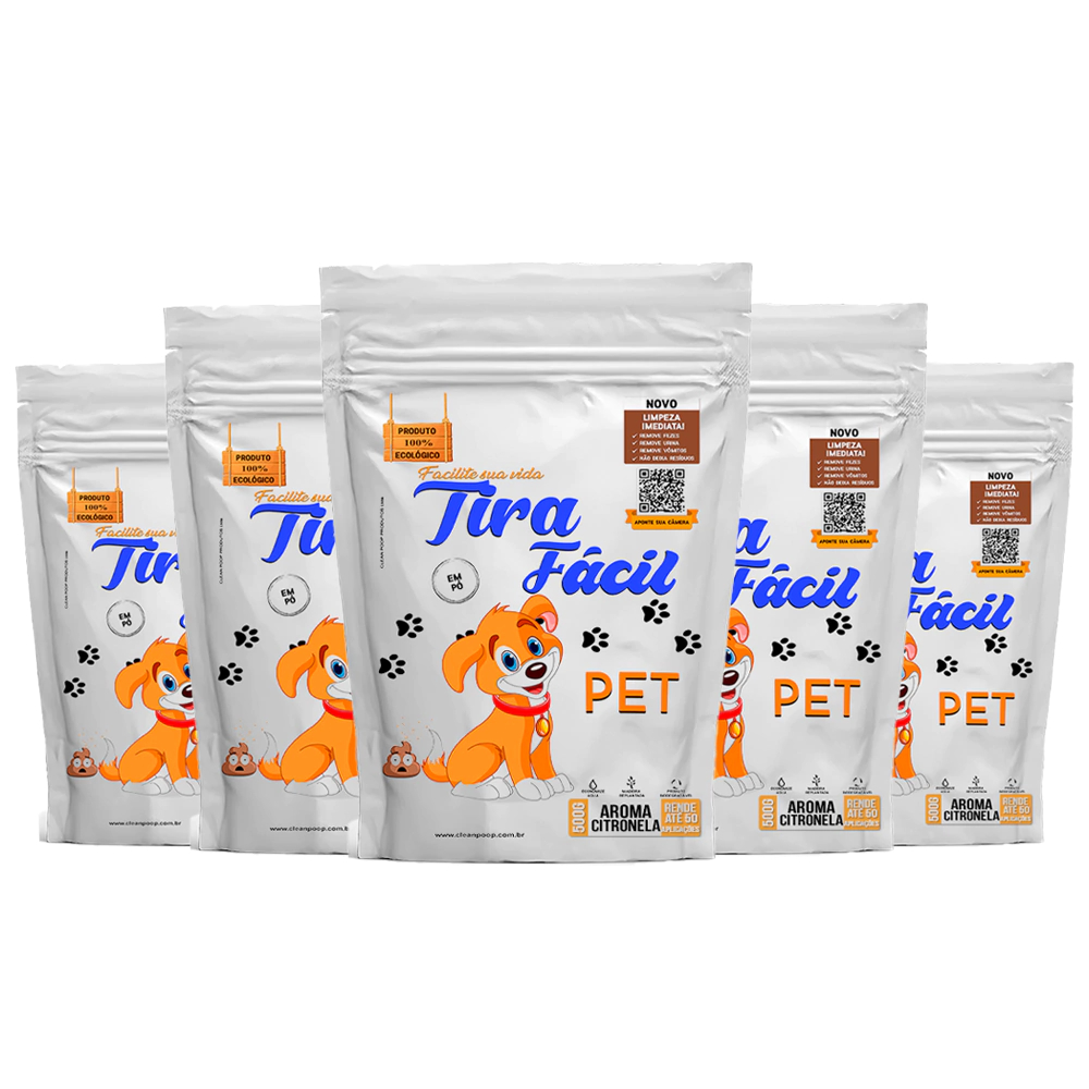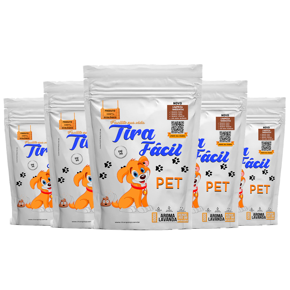 Kit 5un. Pó Higiênico 500G Tira Fácil Pet - Cães e Gatos - Absorve Cocô, Xixi, Vômito em Seg - Aroma