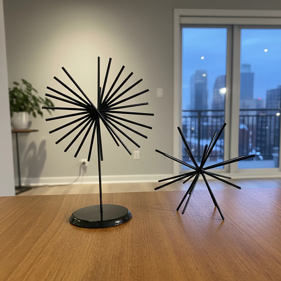 Kit Ouriço + Escultura Girassol Decoração Luxo Designer Moderno E Minimalista Para Sala E Escritório