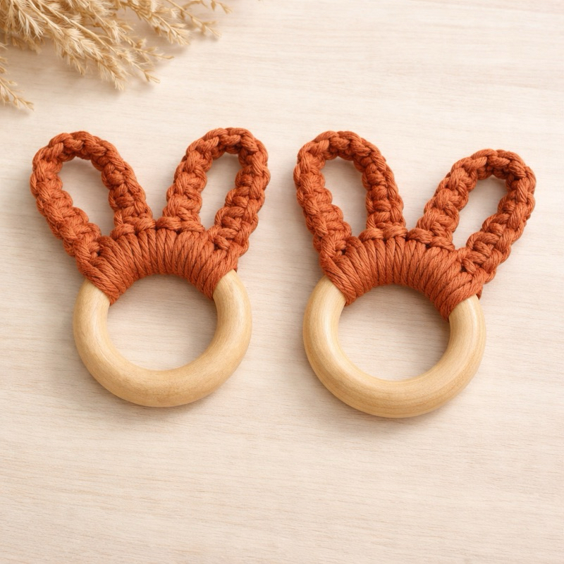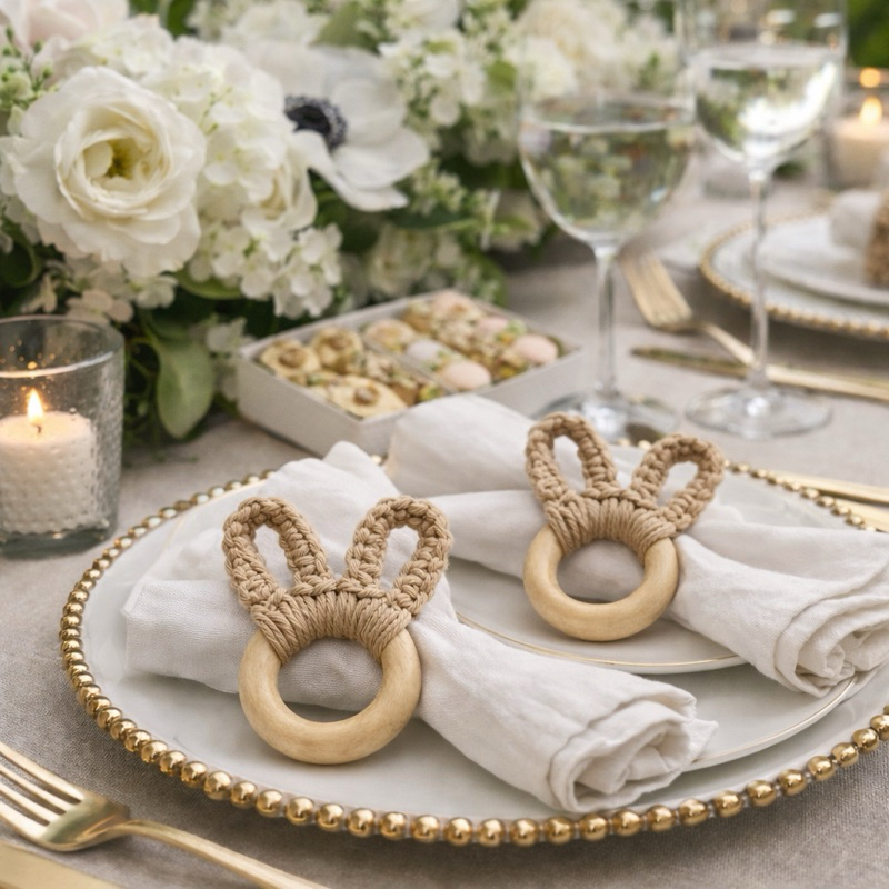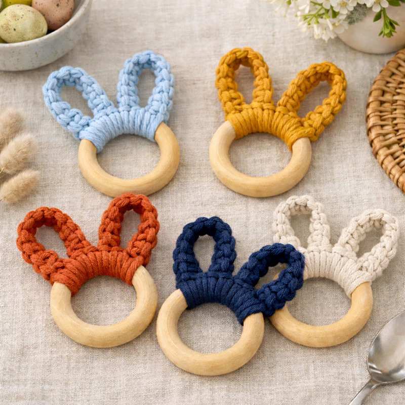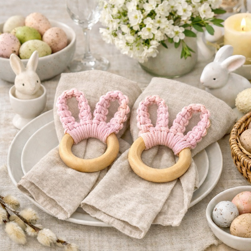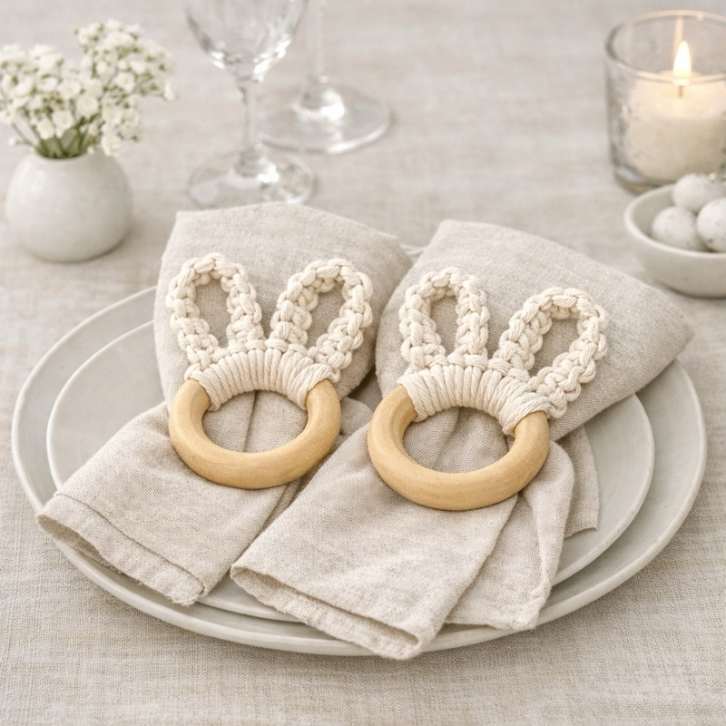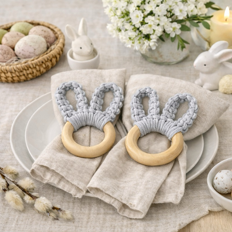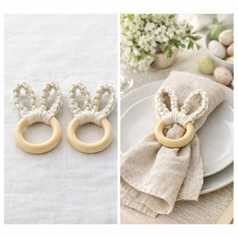 Kit 2 Porta-Guardanapos Coelhinho em Macramê | Argola Porta-Guardanapo Páscoa Mesa Posta Artesanal