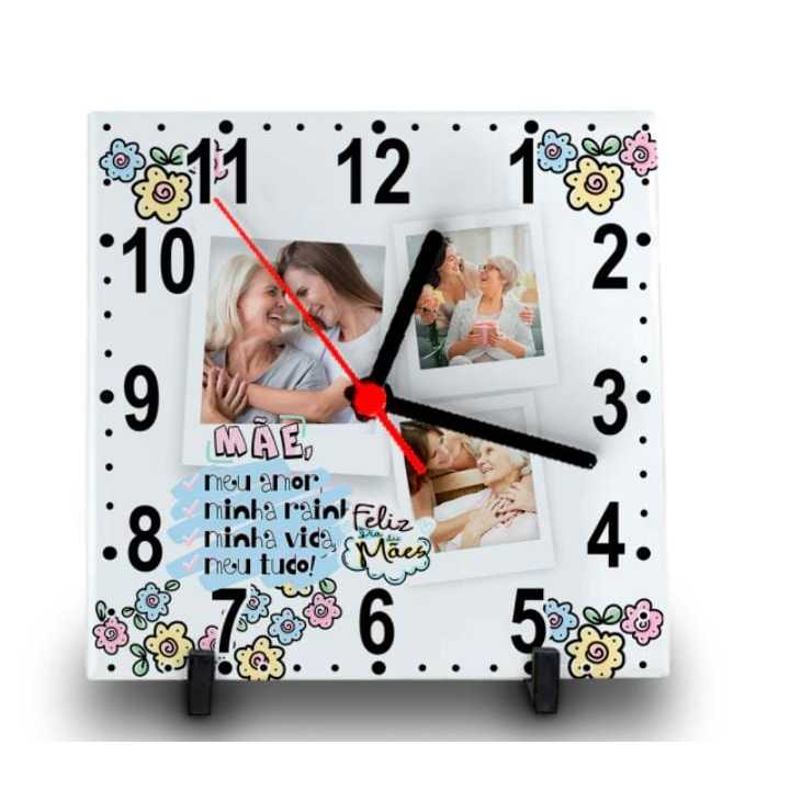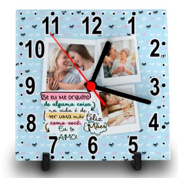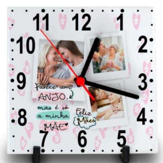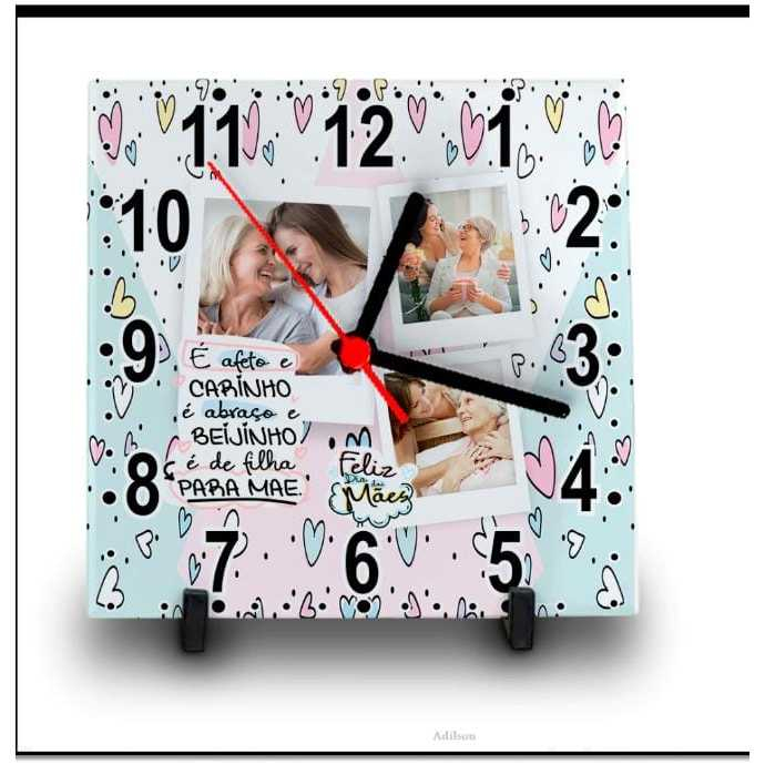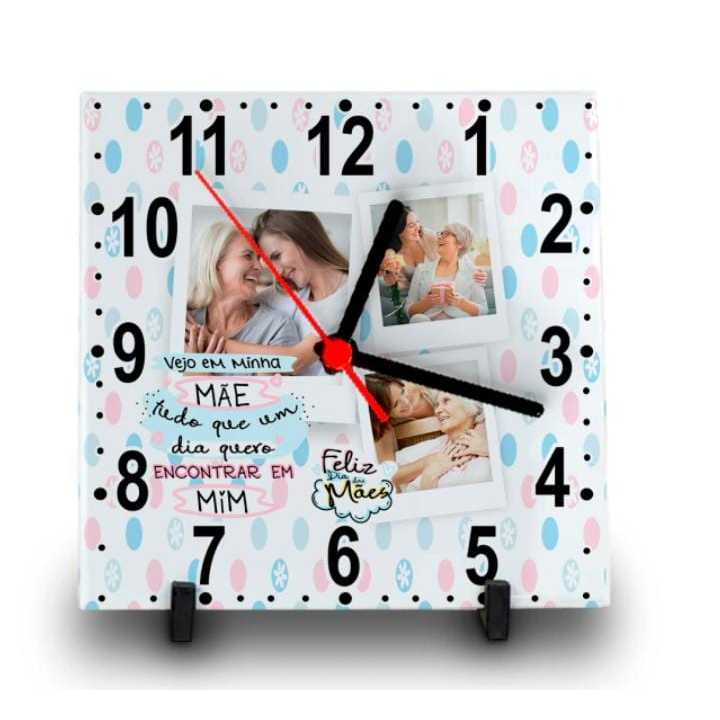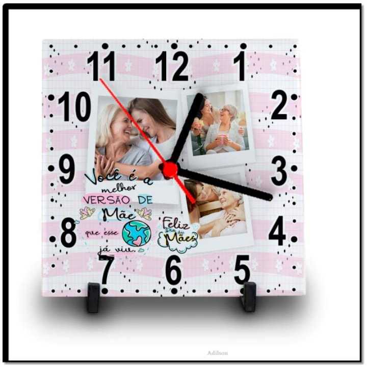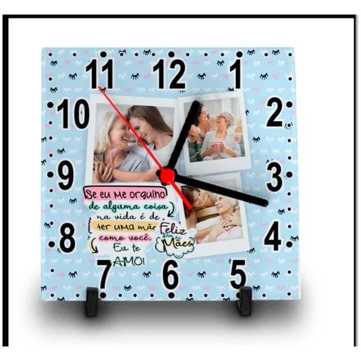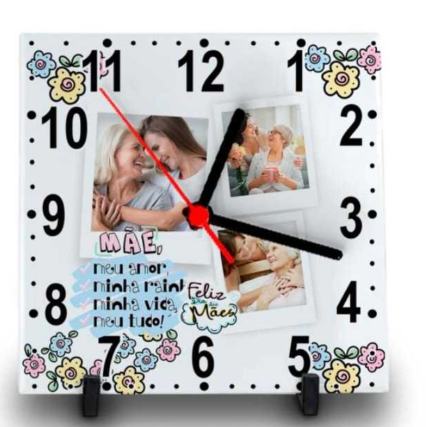 RELÓGIO AZULEJO PERSONALIZADO COM FOTO E NOME DIA DAS MÃES