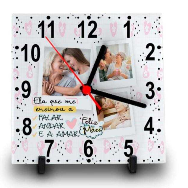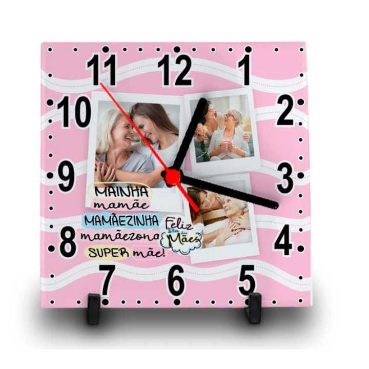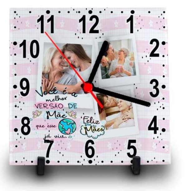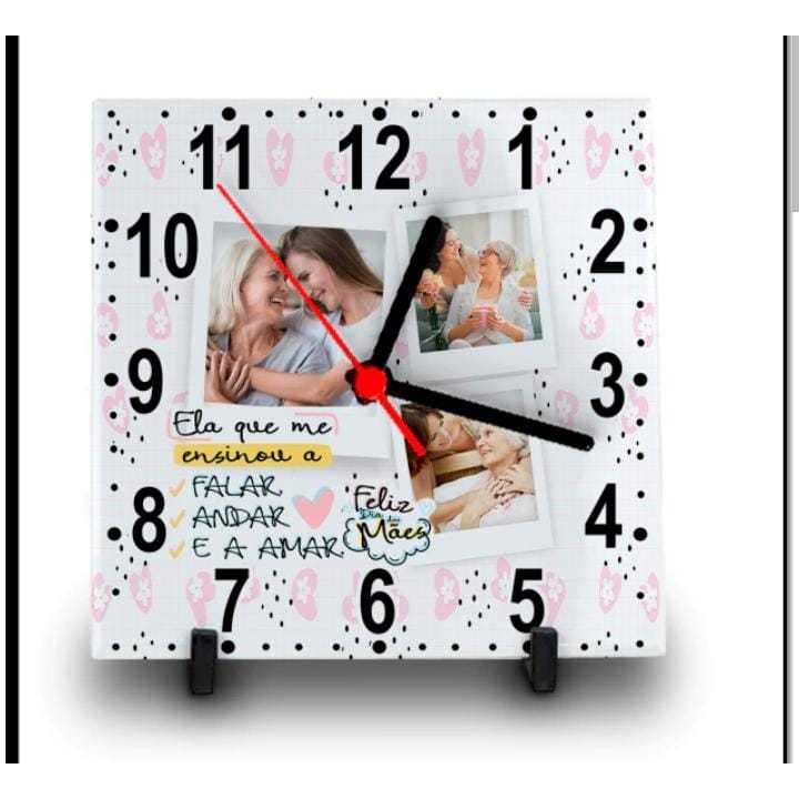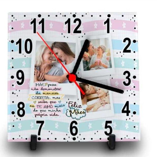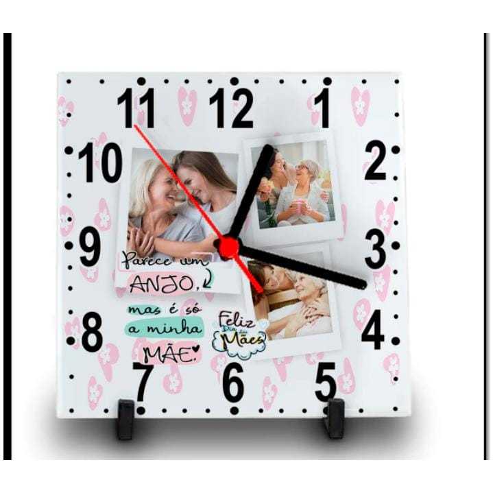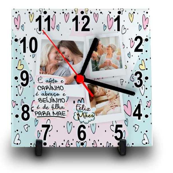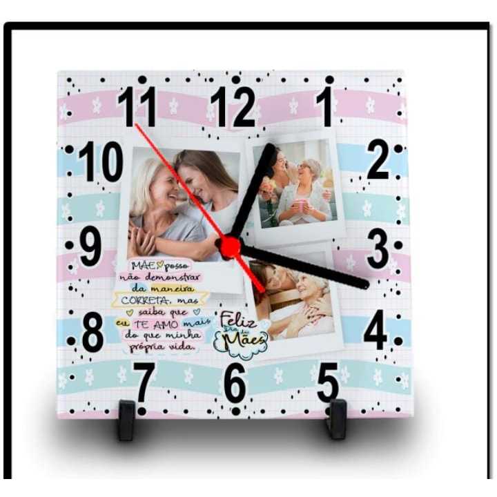 RELÓGIO AZULEJO PERSONALIZADO COM FOTO E NOME DIA DAS MÃES