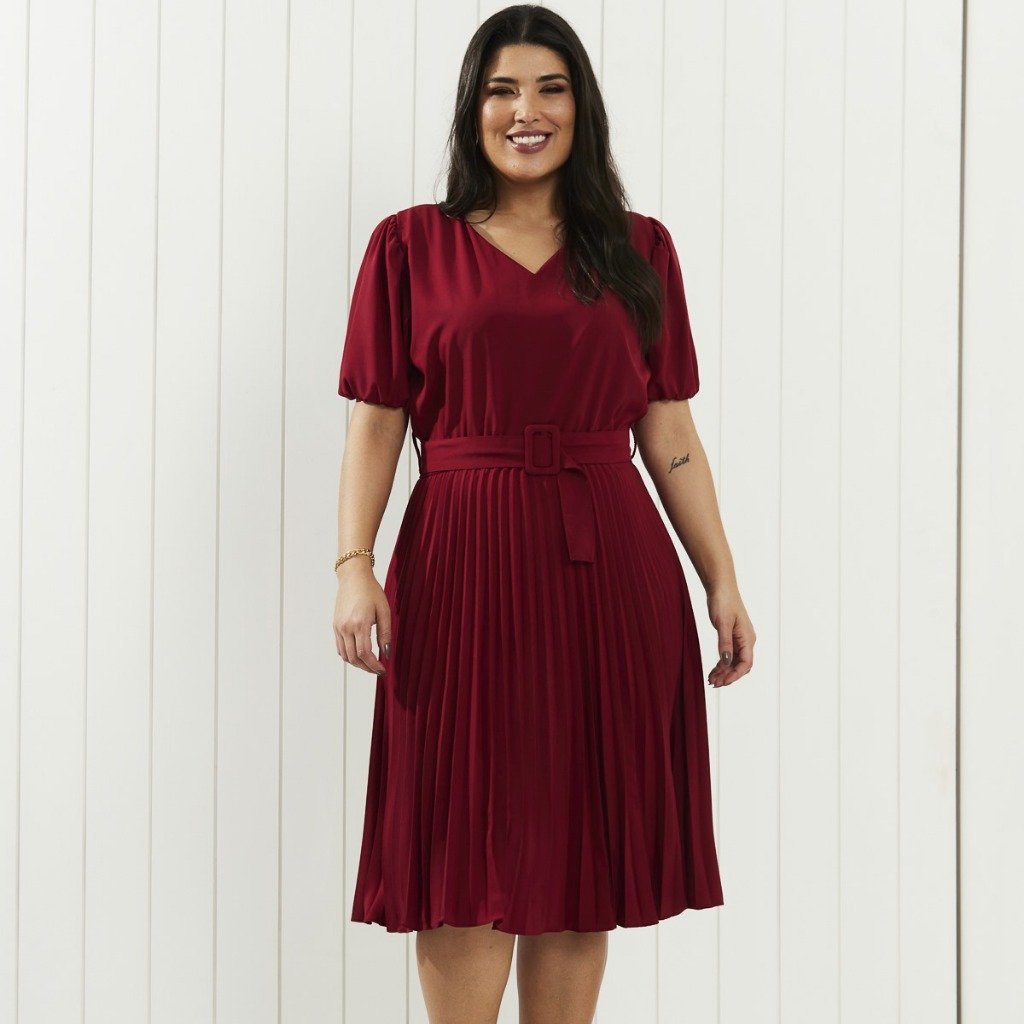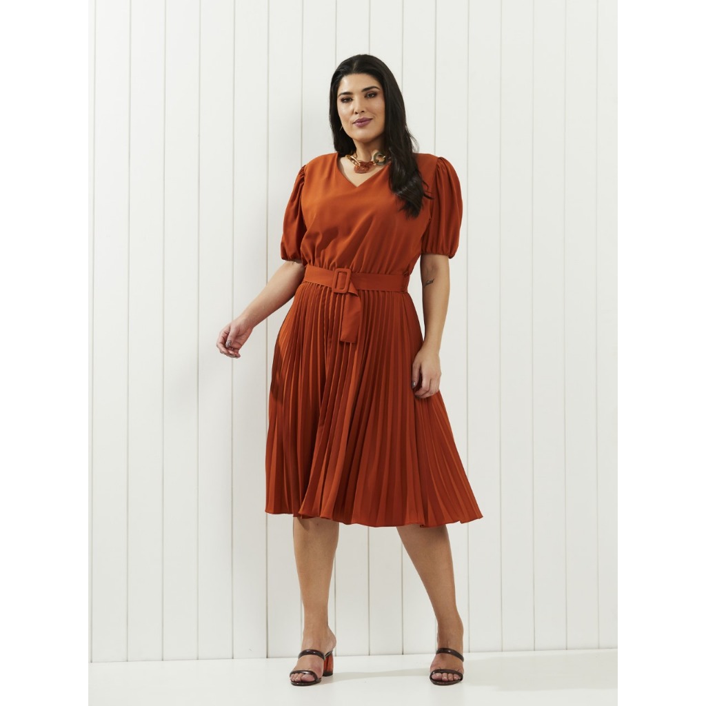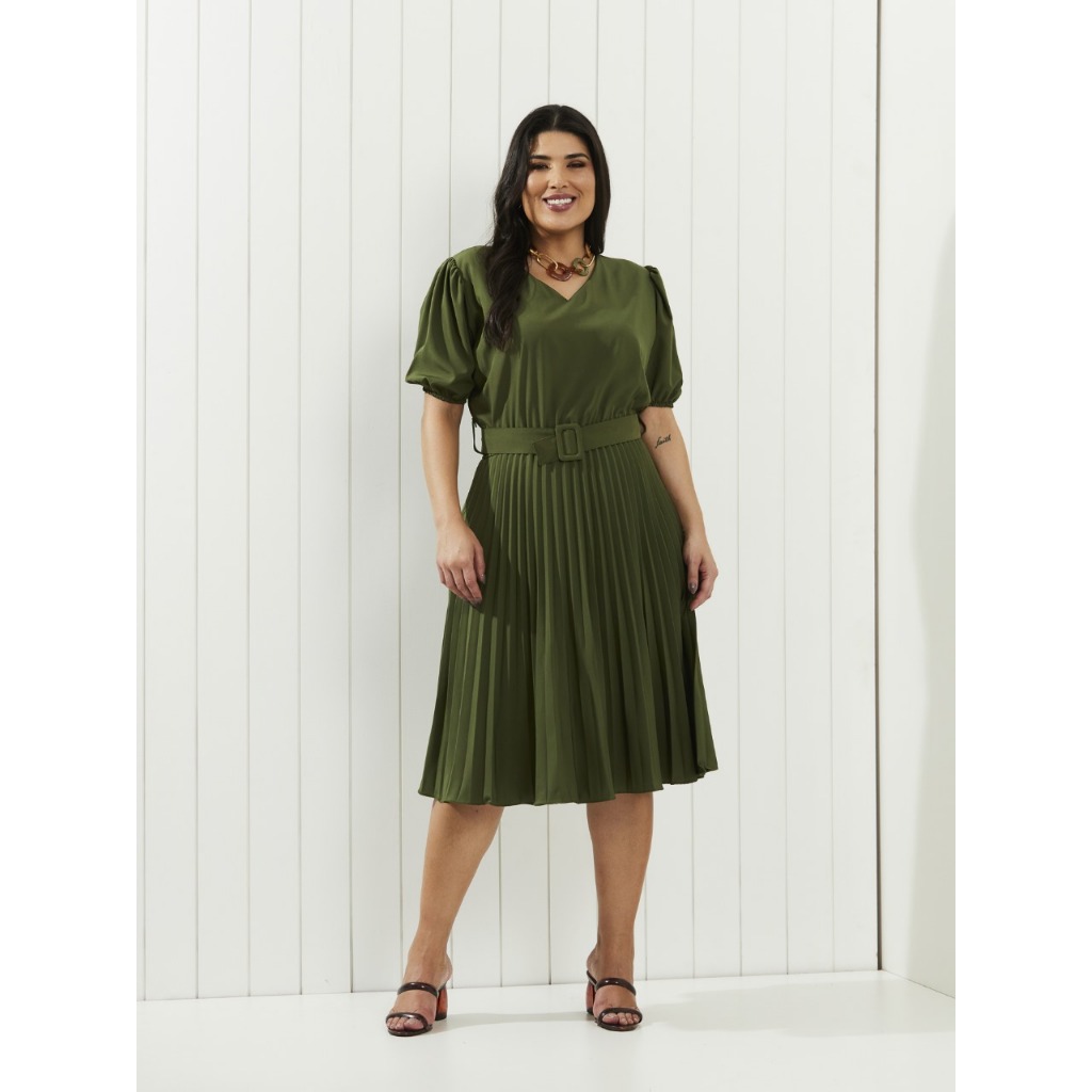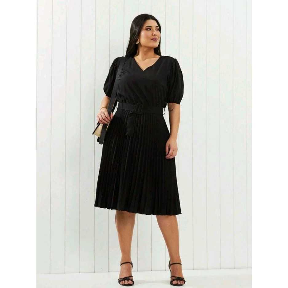 Vestido com cinto fivela quadrada plus size cod 149