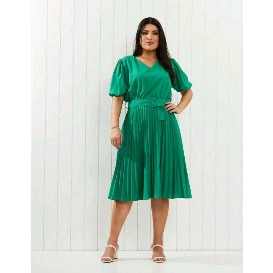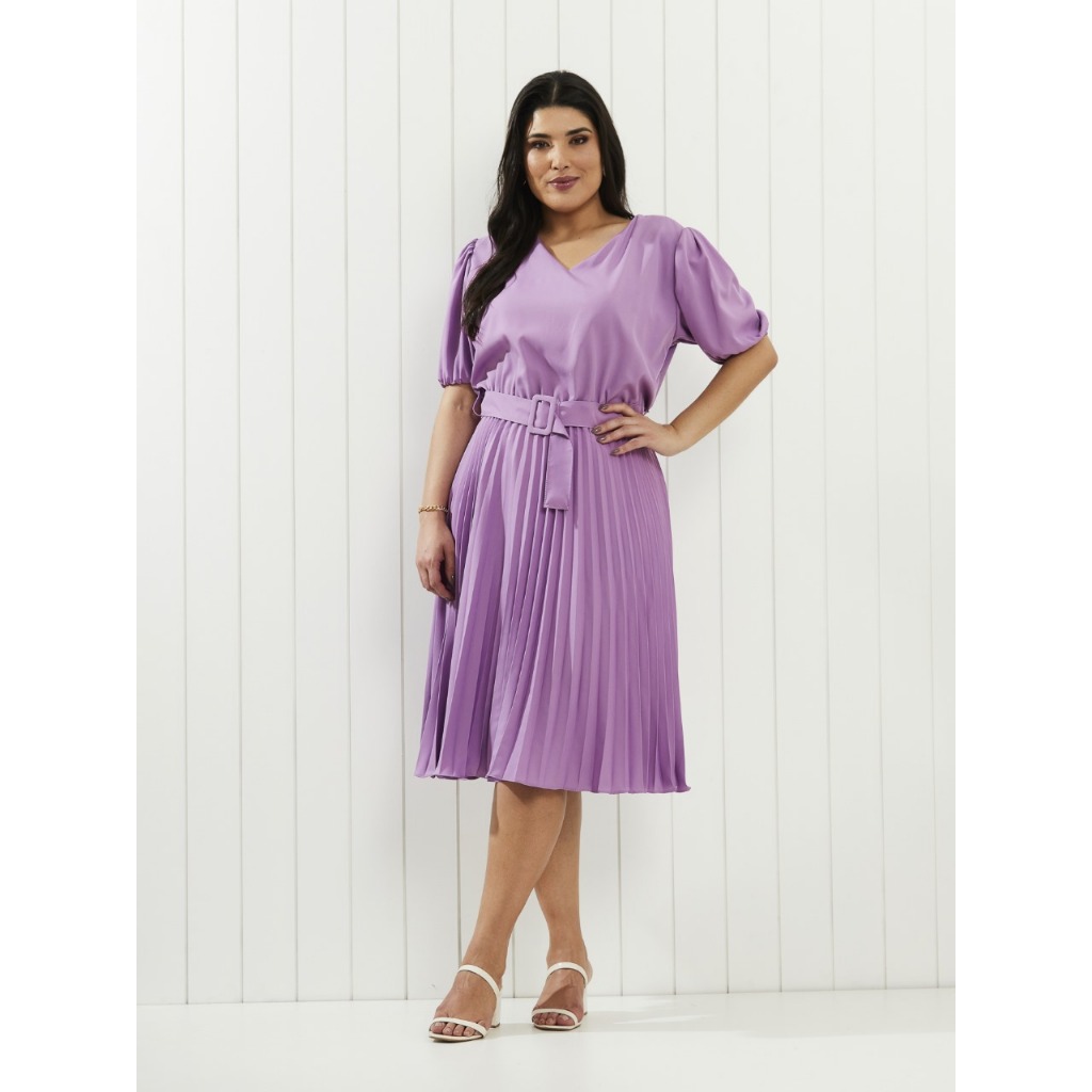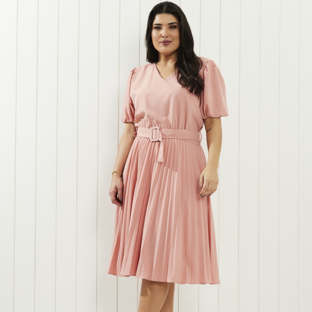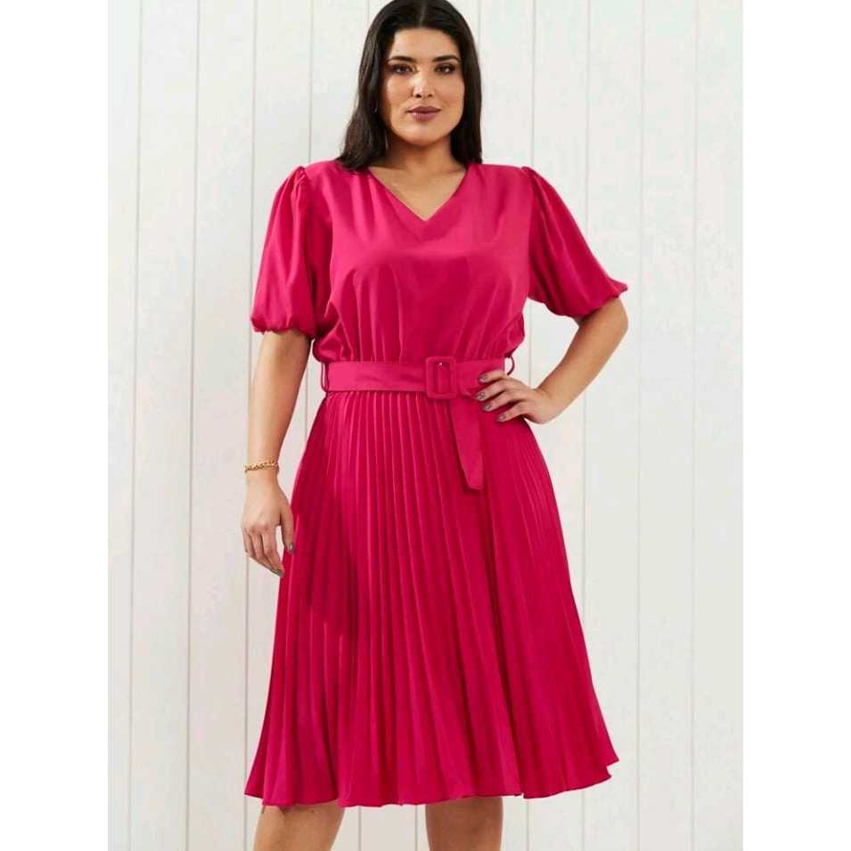 Vestido com cinto fivela quadrada plus size cod 149