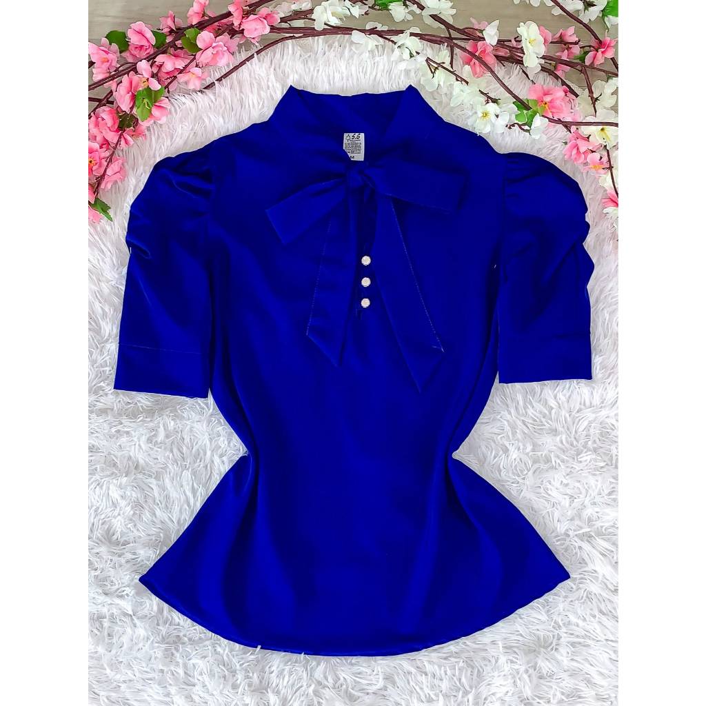 Blusa Social Manga Curta Bufante com laçinho N-8