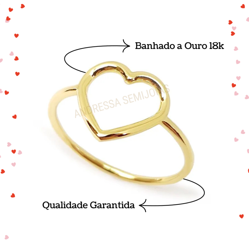 Anel de Coração Vazado Banhado a Ouro 18K - Semi Joia de Luxo
