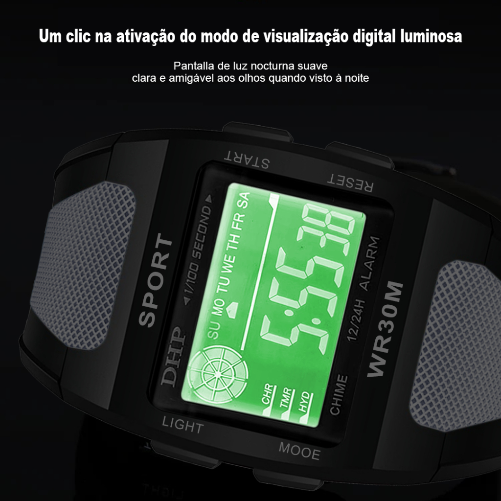 [225] Relógio original digital à prova d'agua masculino esportivo presente da moda alarme/cronômetro