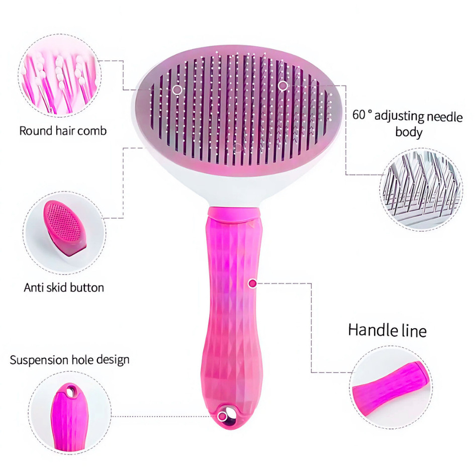 Kit Higiene Pet 4 em 1: Escova Removedora de Pelos + Pente Anti-Pulgas + Cortador e Lixa de Unhas