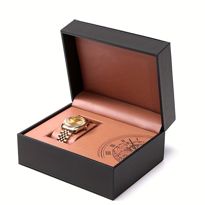 Caixa Estojo Para Relógio Luxo Couro Preto Com Almofada Masculino e Feminino Organizador Viagem Expositor Premium