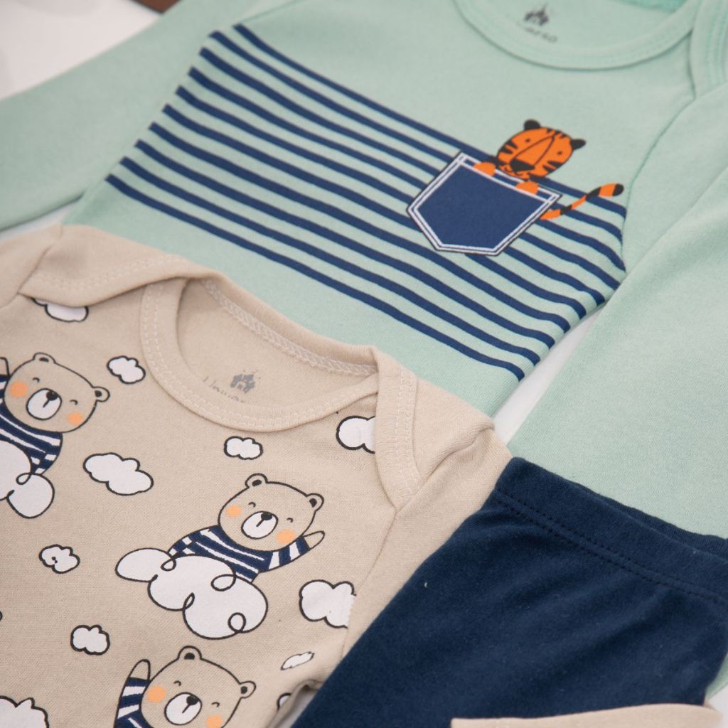 Kit 8 Peças de Roupas para Bebê 4 body+ 4 calças/mijão - Kit com 4 body + 4 Mijão de Roupa Infantil Bebe