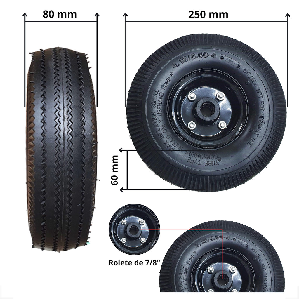 Kit 2 Pneus Roda C/câmara Carrinho De Carga 100kg Aro 3.50-4