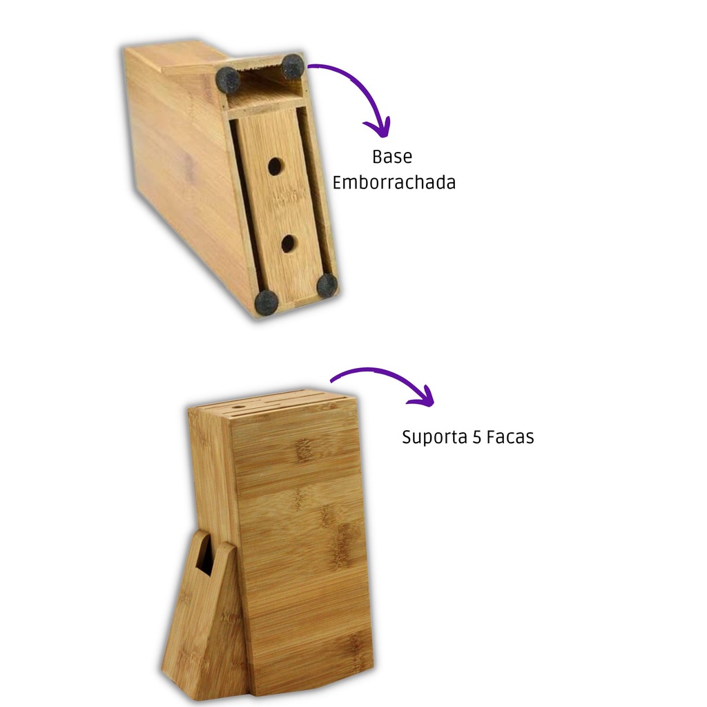 Faqueiro Suporte Organizador Cepo de Bambu Para Faca Cozinha Madeira