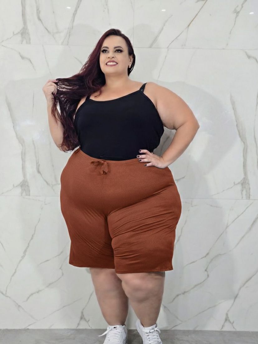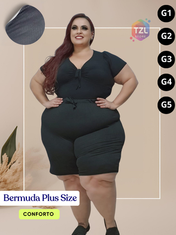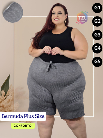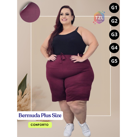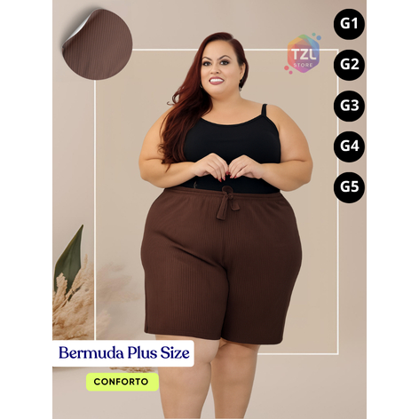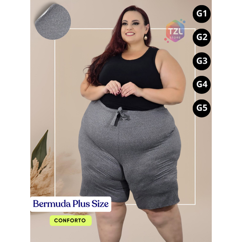 Bermuda Feminina Plus Size Malha Canelada G1-G2-G3-G4-G5
