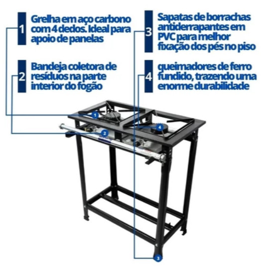Fogão Industrial 2 Bocas 30x30cm Alta Pressão P5 JCN Grelha Aço Carbono