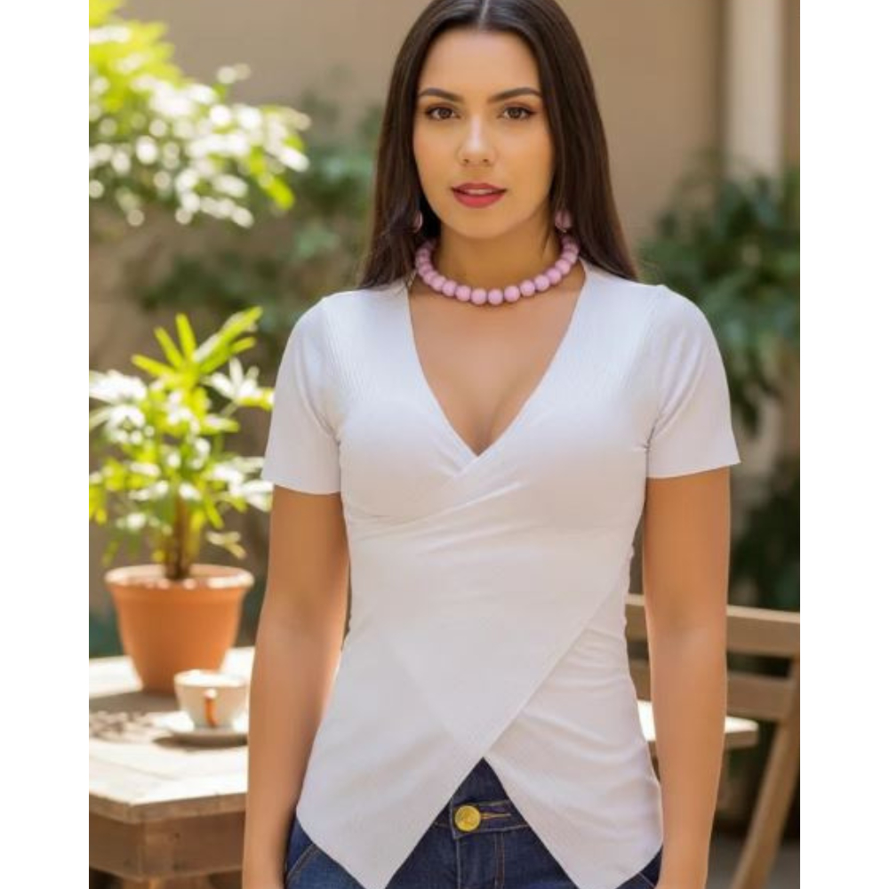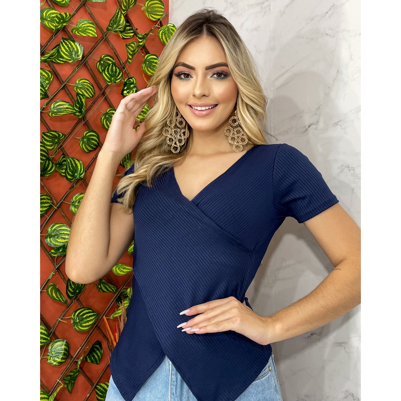 blusas transpassada marquezine gola V manga curta decote moda blogueira Feminina P/M/G