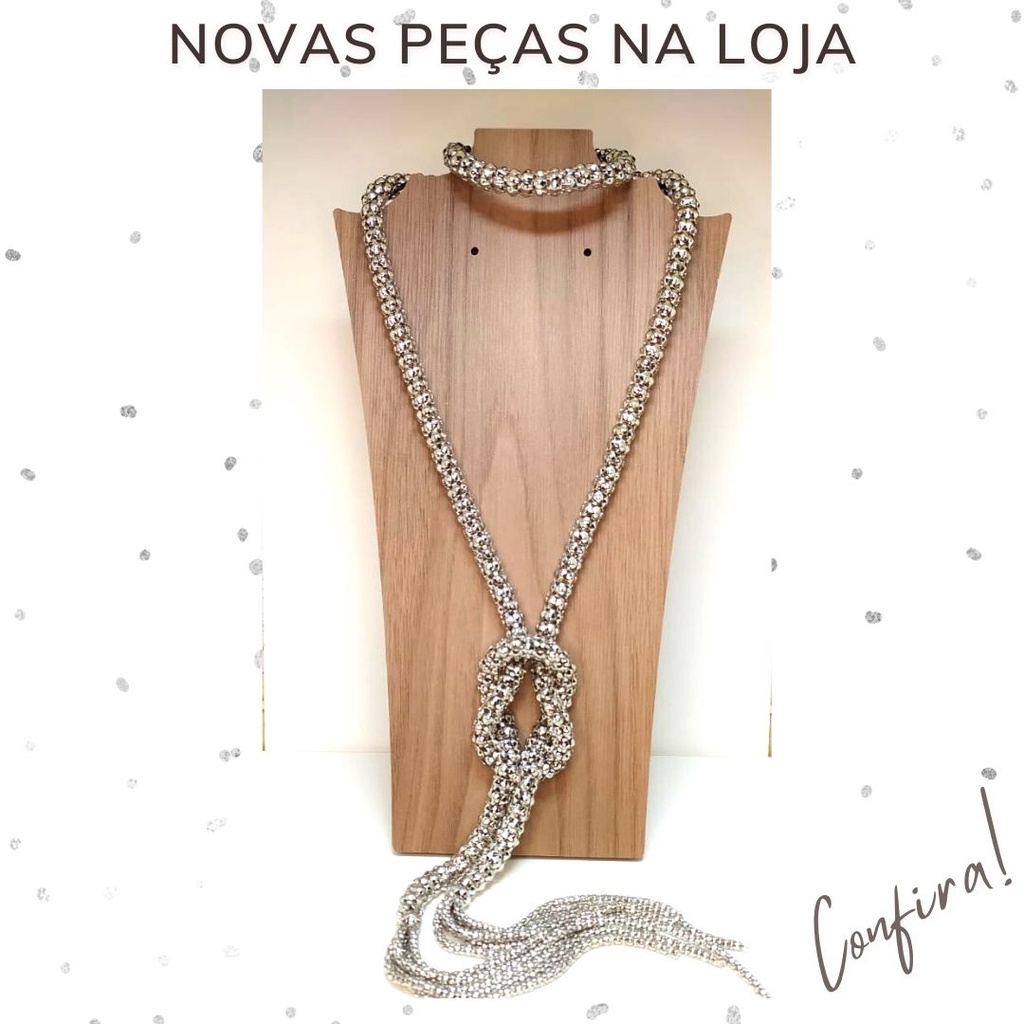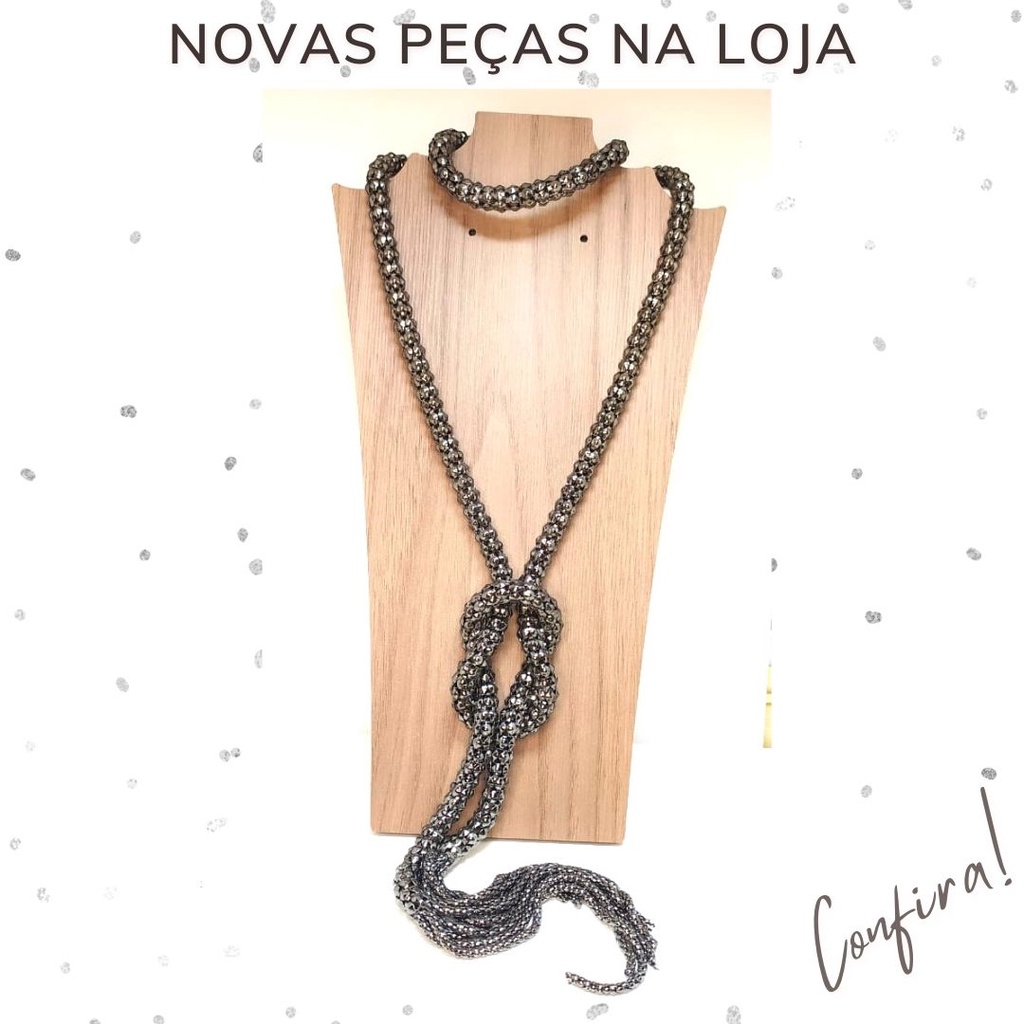 Colar longo de metal elegante estilo Malha