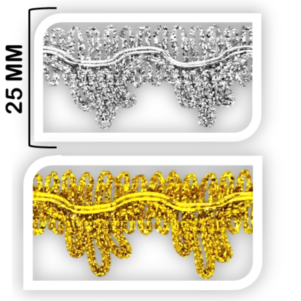 GALÃO BICO ESPONJA 20 METROS - LARGURA 25MM - OURO E PRATA