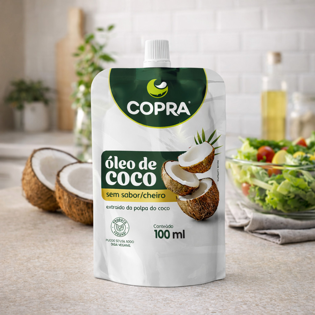 Óleo de Coco Copra 100ml Sem Sabor e Odor Pouch Natural Vegano