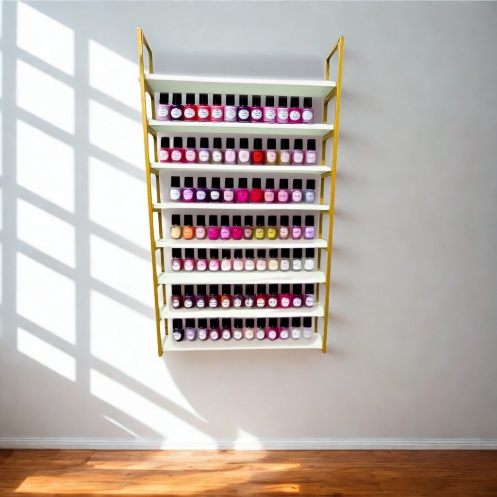 Expositor de Esmaltes 8 Prateleiras 60cm Estilo Industrial em Ferro e MDF p/ Sala Quarto Salão