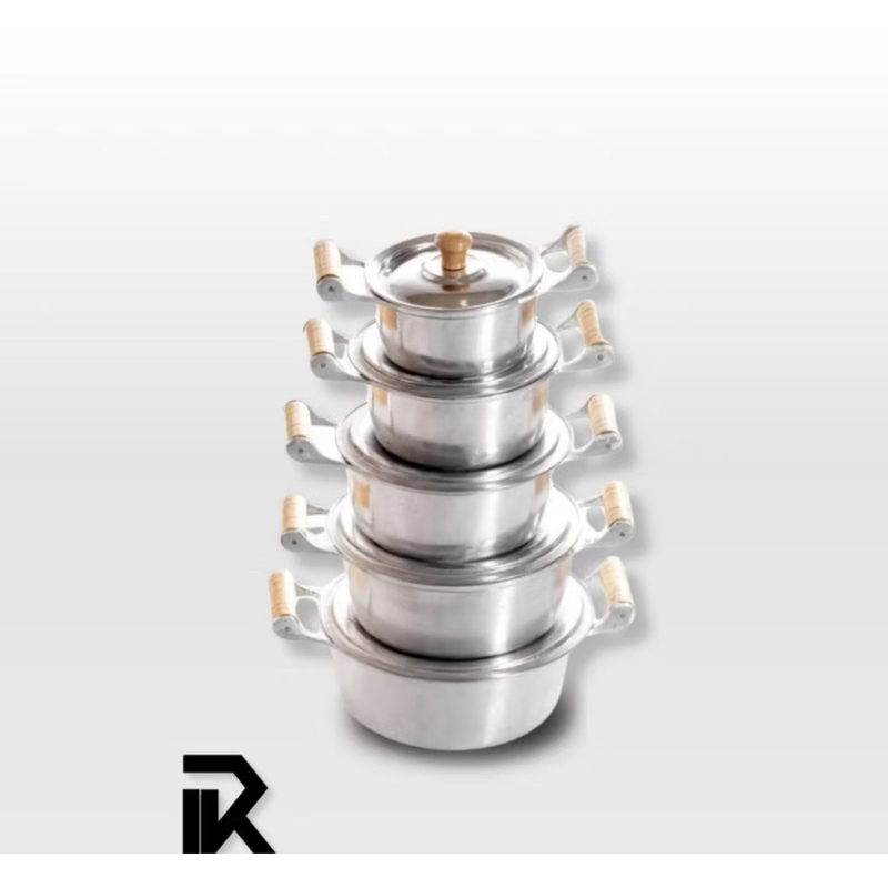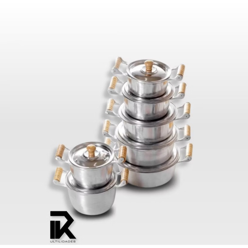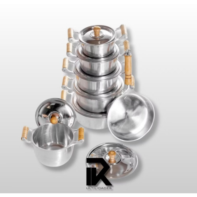 Conjunto 5 Panelas Alumínio Batido + Frigideira + Caldeirãoo + Caneco