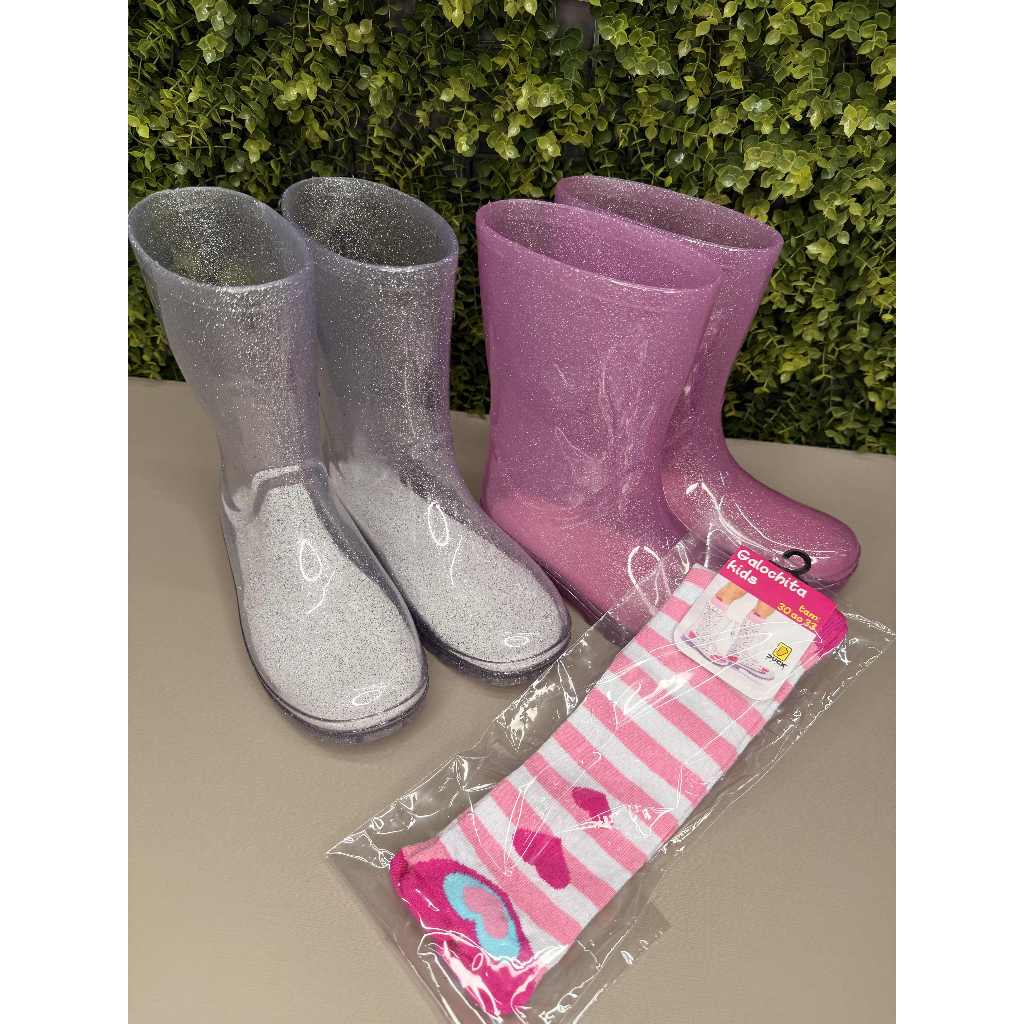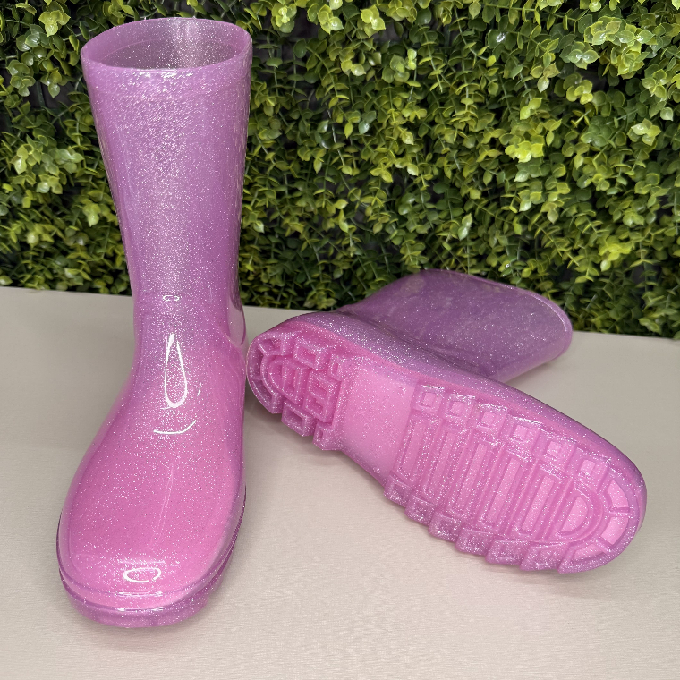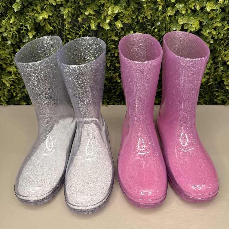 Bota galocha infantil menina Bota cano alto Bota injetada Bota de chuva com Gliter