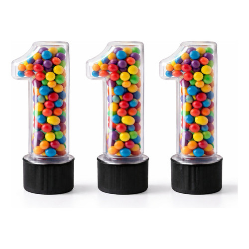 Kit 20 Tubetes Número 1 Acrílico Transparente Lembrancinha Festa Infantil Aniversário 1 Ano Decoração Personalizável